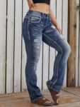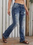 Flamingals Distressed Bootcut Jeans for Women Low Rise Jeans Ripped Flare Jeans Denim Pants