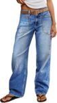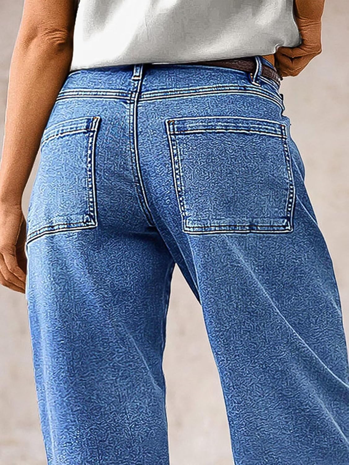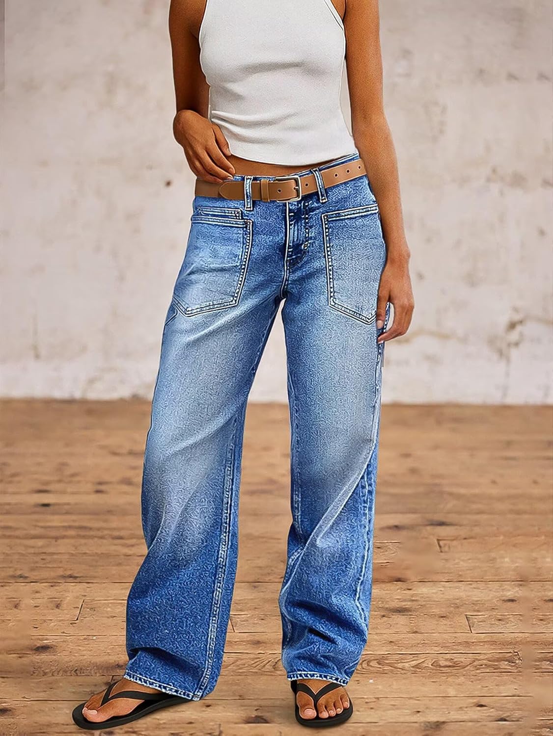 Flamingals Straight Leg Jeans for Women Trendy Mid Rise Stretchy Patch Pocket Baggy Jeans Casual Without Belt