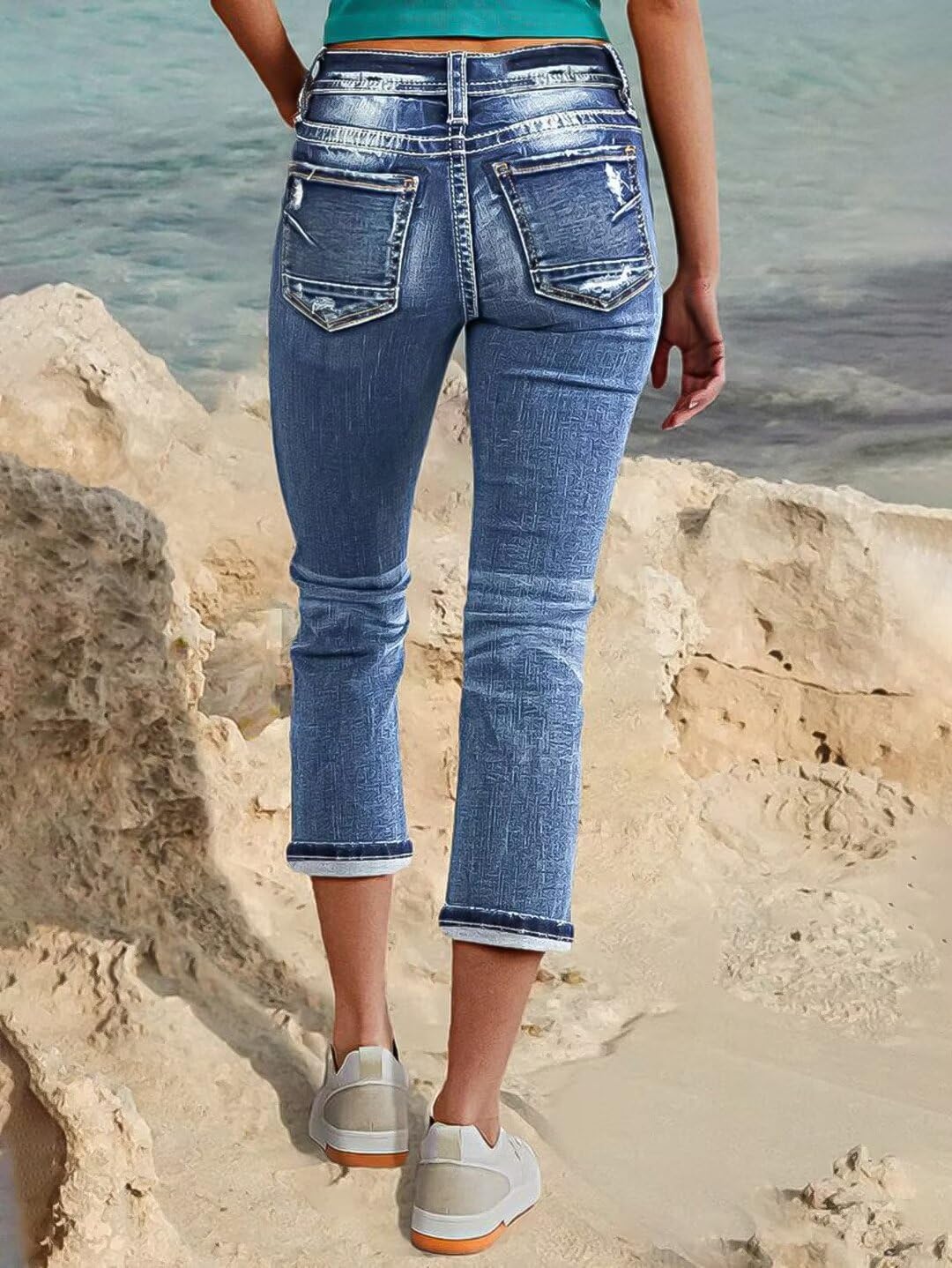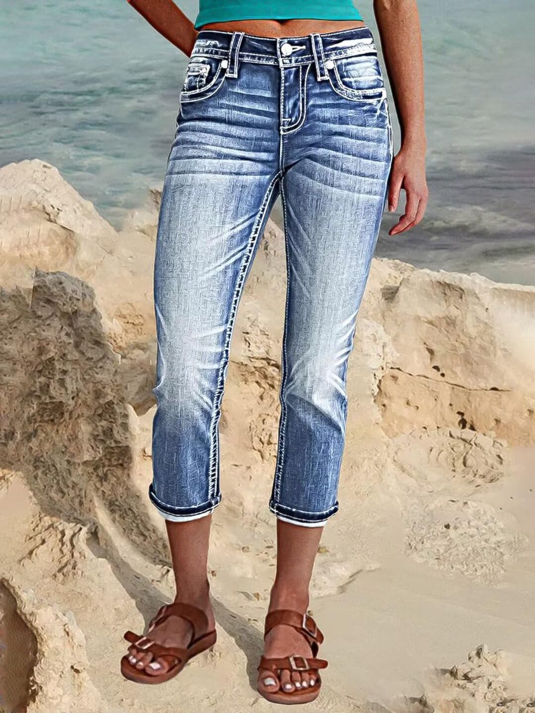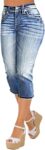 Flamingals Women’s Denim Capri Jeans for Women Mid Rise Skinny Capri Pants