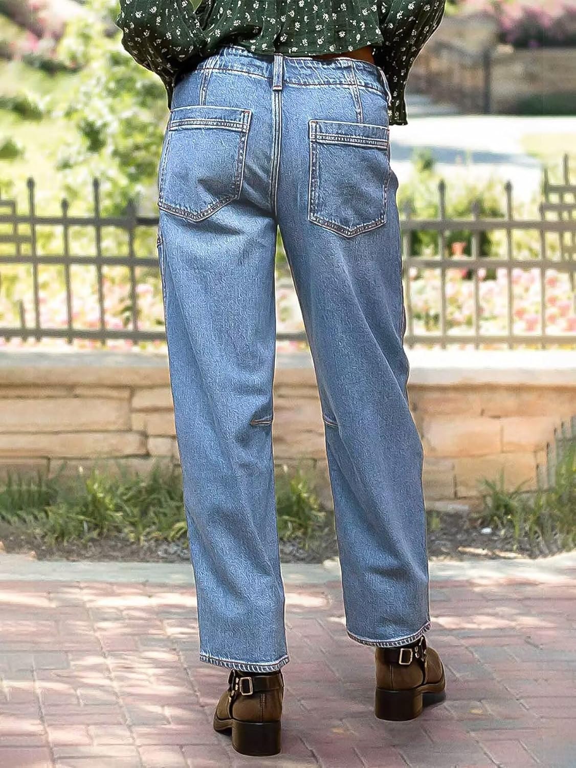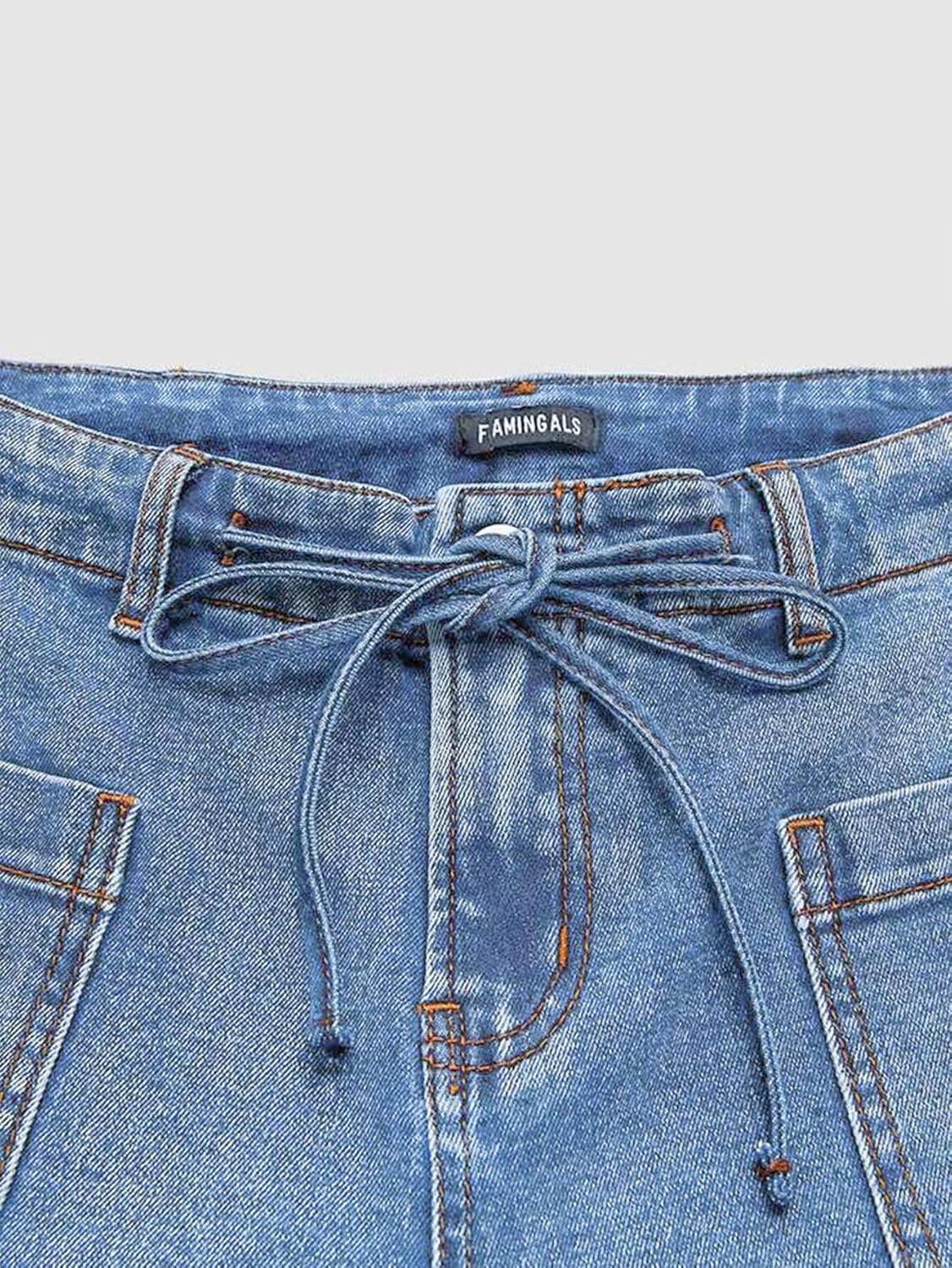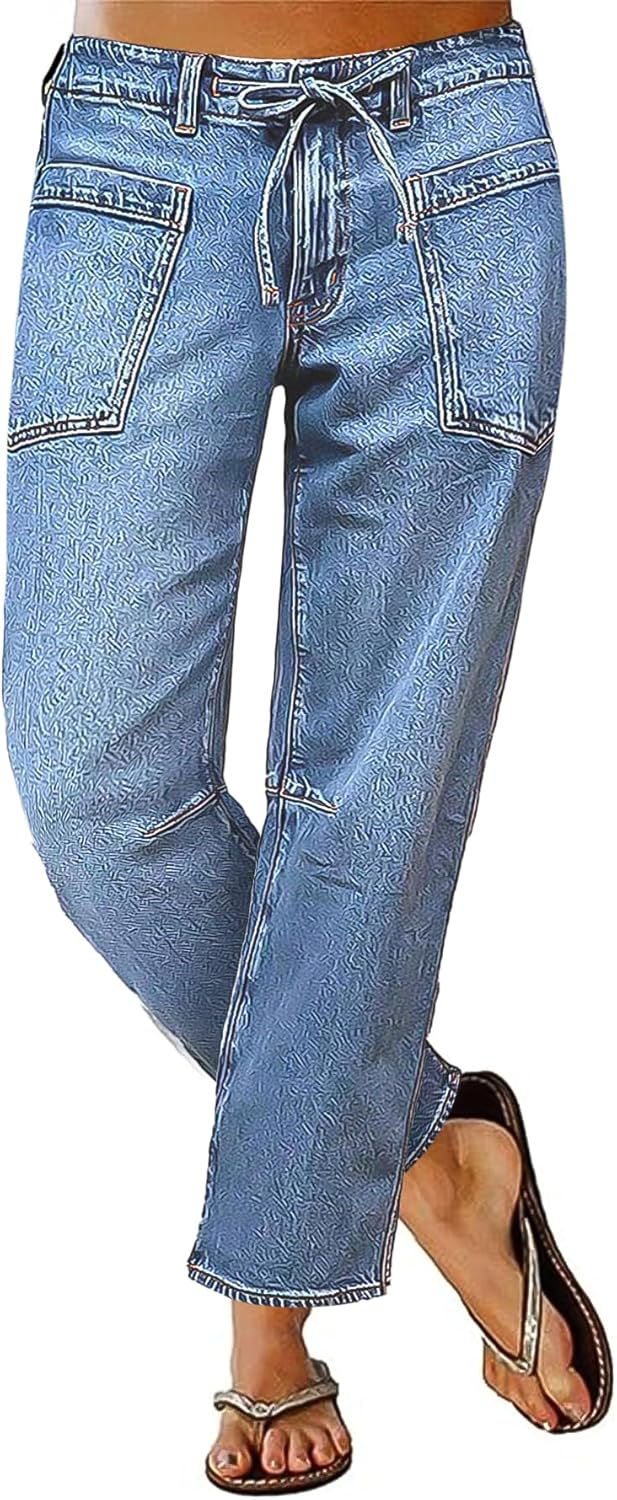 Flamingals Women’s Mid Waist Straight Leg Jeans Drawstring Cropped Jeans Women Stretchy