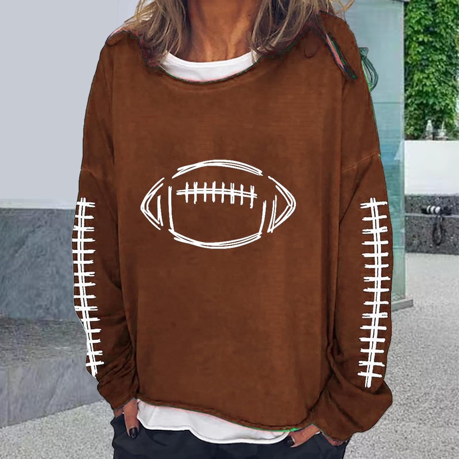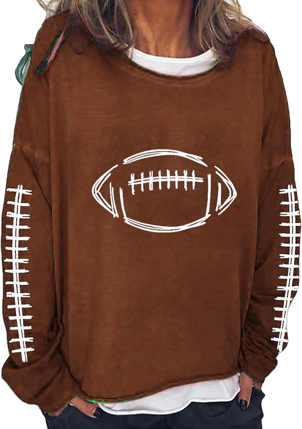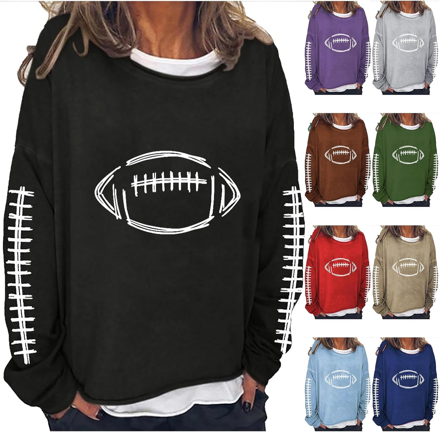 Football Game Day Sweatshirts for Women Football Mom Shirts Long Sleeve Crewneck Season Shirts Top Trendy Pullover