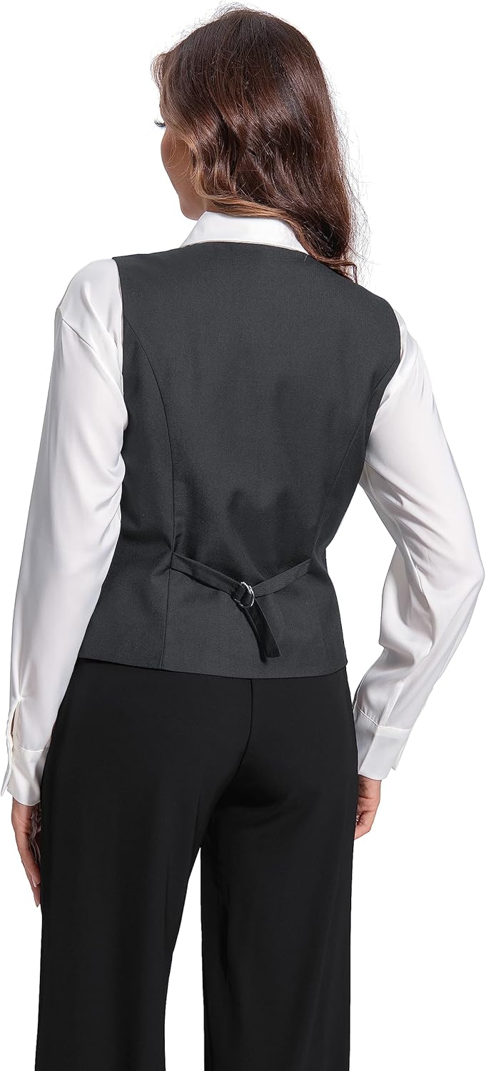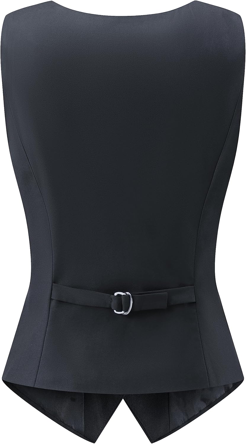 FOUCOME womens suit vest with well made and trend design perfect details for high-end 4 buttons, feature a V-neck look at the front. Collarless design can be free with a variety of scarves or tie.