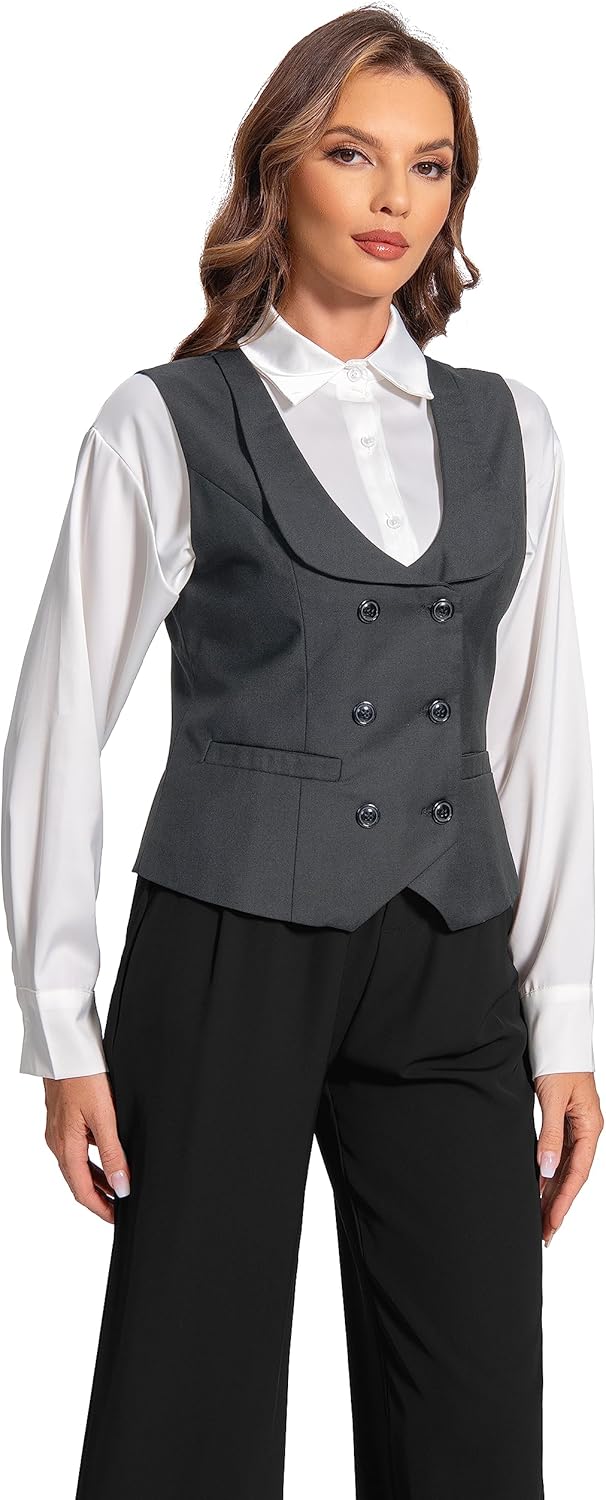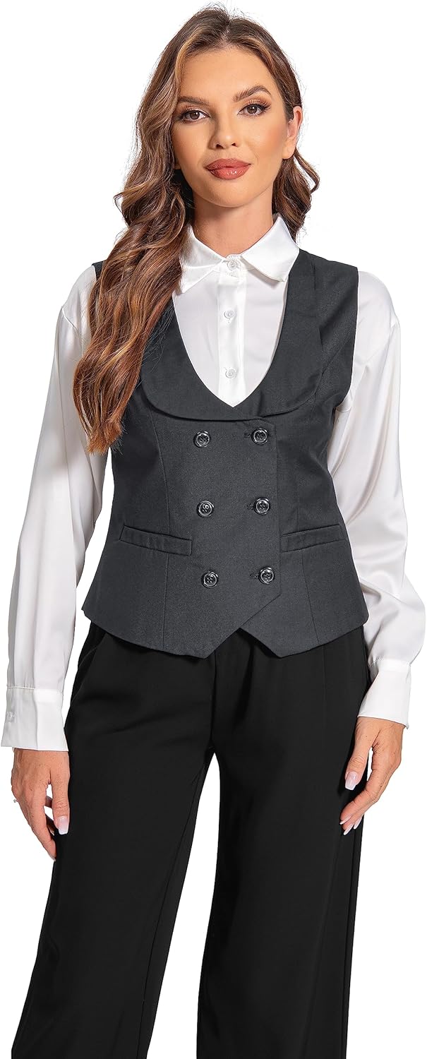Foucome Double Breasted Waistcoat for Women – Dressy Lapel Collar Vest Top