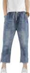 FTCayanz Women’s Elastic Waist Cropped Jeans Baggy Drawstring Stretch Denim Pants with Pockets