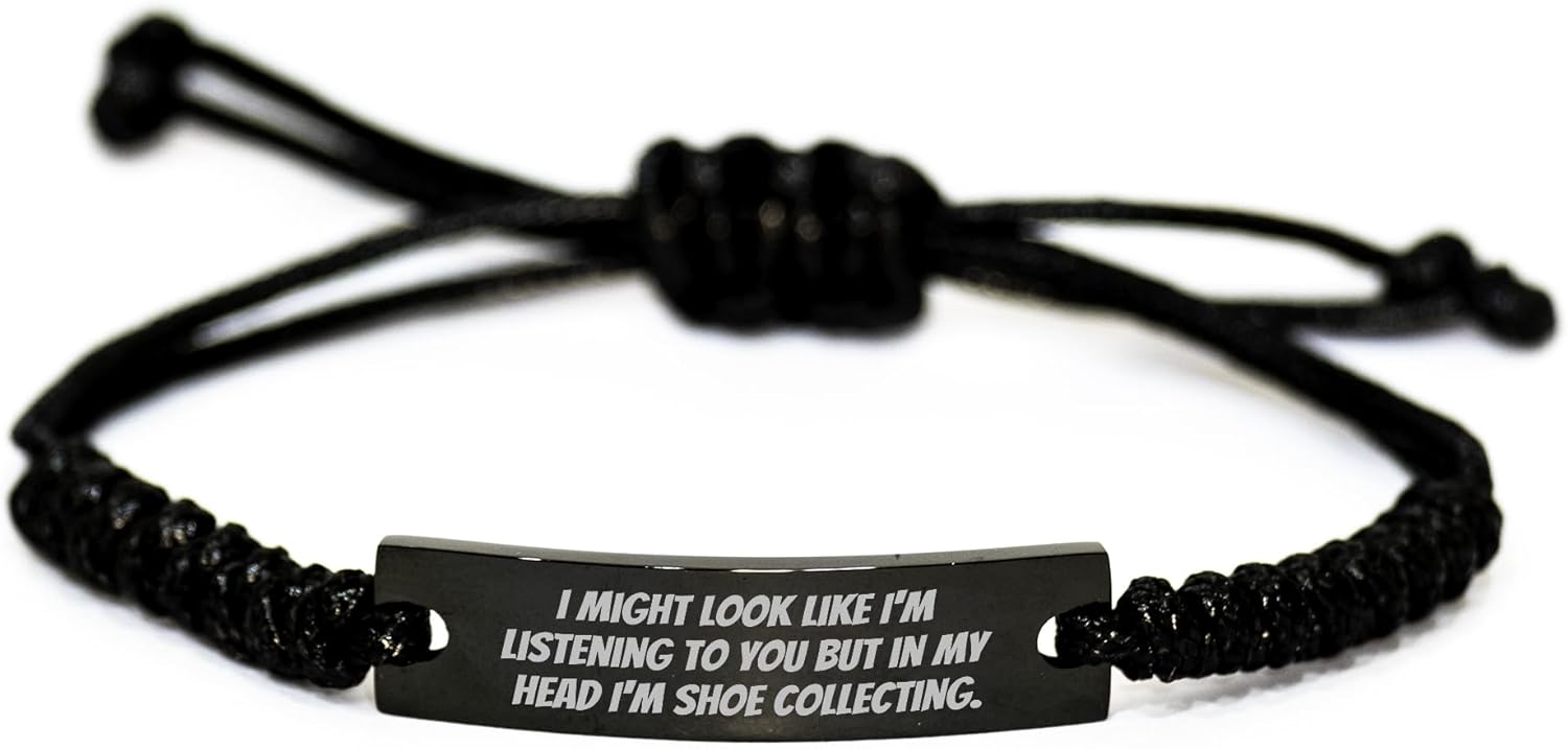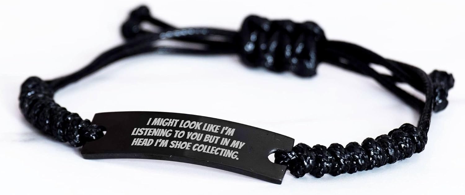 Funny Shoe Collecting Gifts from Friends for Mother’s Day – Engraved Rope Bracelet – I Might Look Like I’m Listening To You But In My Head I’m Shoe Collecting.