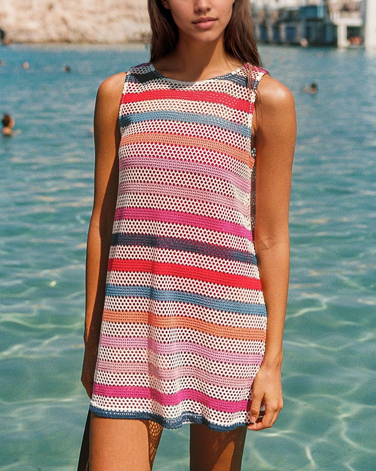 Features: Women’s summer crochet swim cover ups,sleeveless,splits to sides,round neck,hollow out,knitted. This beach dress cover up perfect for wearing at beach, swimming pool, poolside tanning salon, and Water Park.