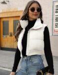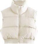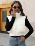 Gihuo Cropped Puffer Vest full zip padded coat sleeveless puffer vest