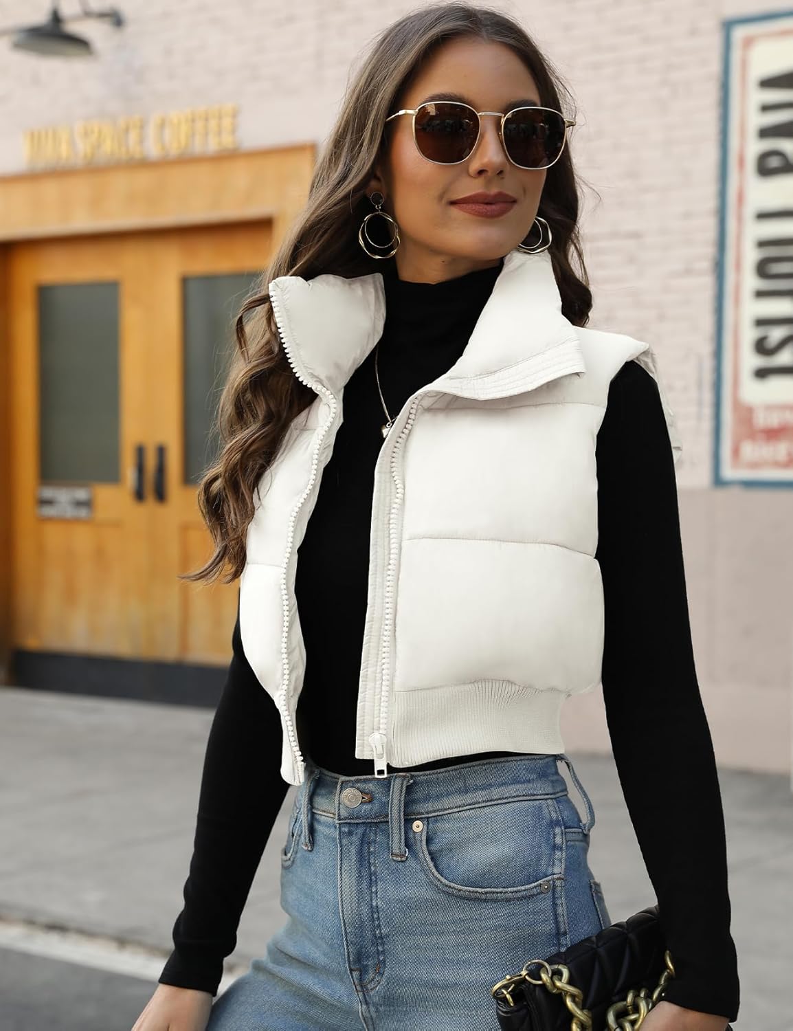Videos of customers matching idea for the cropped puffer vest Cropped Puffer Vest for the Puffy Vest Gilet Womens Puffy Sleeveless Puffer Jackets Cropped Length