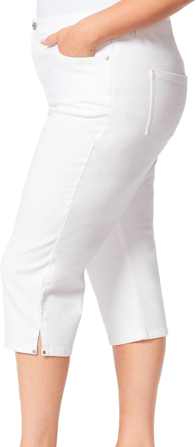 Gloria Vanderbilt’s Amanda Classic capri sits at natural waist with functional pockets, zipper fly, belt loops and stretch for a perfect fit feeling Everytime. This high rise waist crop has a contour fit and stretch body with excellent recovery. Pairs perfectly with all tops from fashion forward to a basic tee shirt and all footwear from stylish heels to your favorit trendy flats. Available in assorted solid colors, see color name for specifics. Gloria Vanderbilt is a versatile yet classic look that attracts and connects with the modern sensibility of consumers of all ages.
