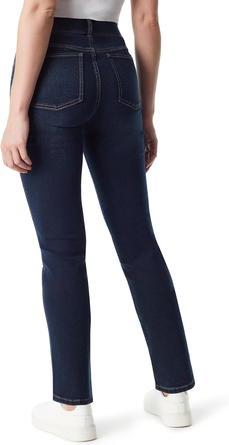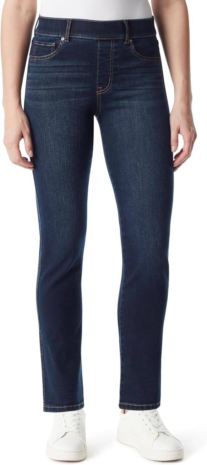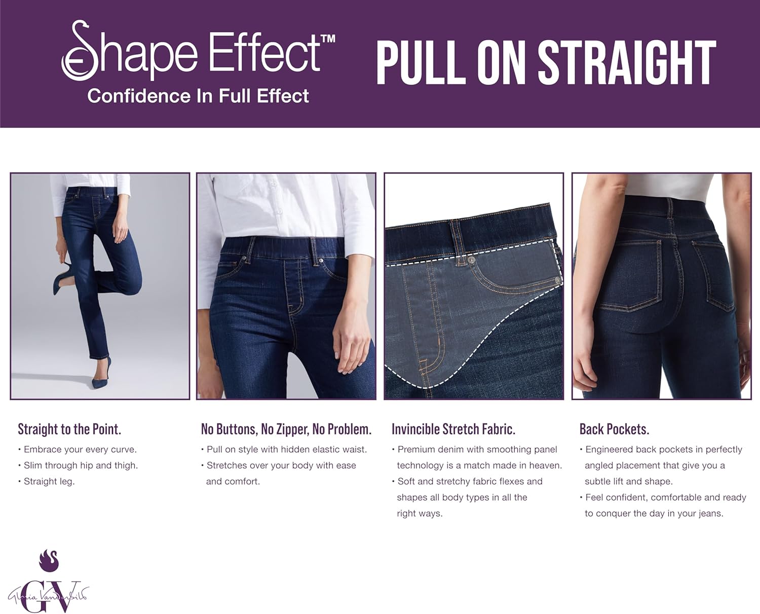 Gloria Vanderbilt Women’s Apparel; Shape effect comfort waist pull on striaght leg jean gives you that cover confidence we all want whether your top is tucked in or not. The high rise waist sits at natural waistline with a comfortable elastic waistband and fully functional back pockets so you can run around with or without a handbag. This striaght leg jean will go great with all your tops from fashion forward to a basic tee shirt as well as all footwear from strappy sandals and trendy heels to your favorite flats or boots. the perfect year round bottom available in assorted washes, see color name for specifics. – Goria Vanderbilt, Effortlessly fun and stylish. A versatile yet classic look that attracts and connects with the modern sensibility of consumers of all ages.