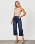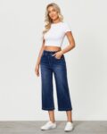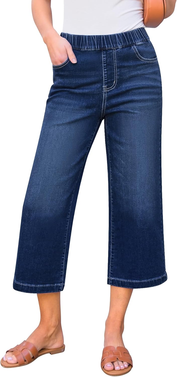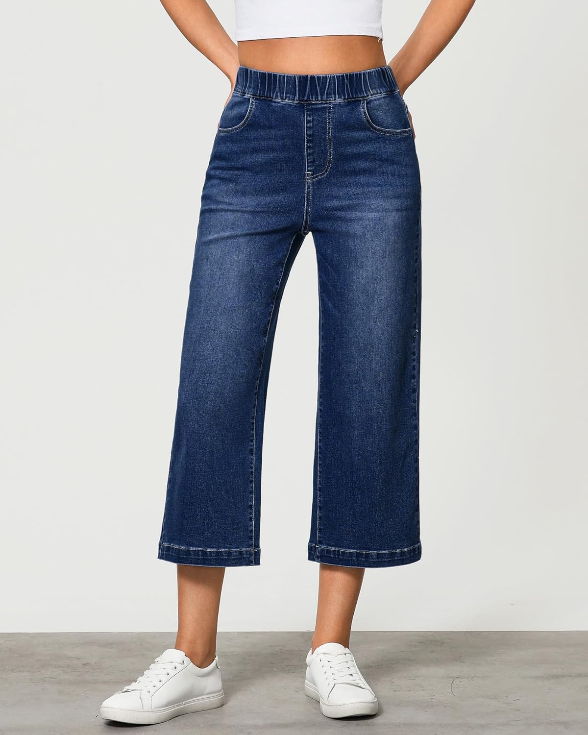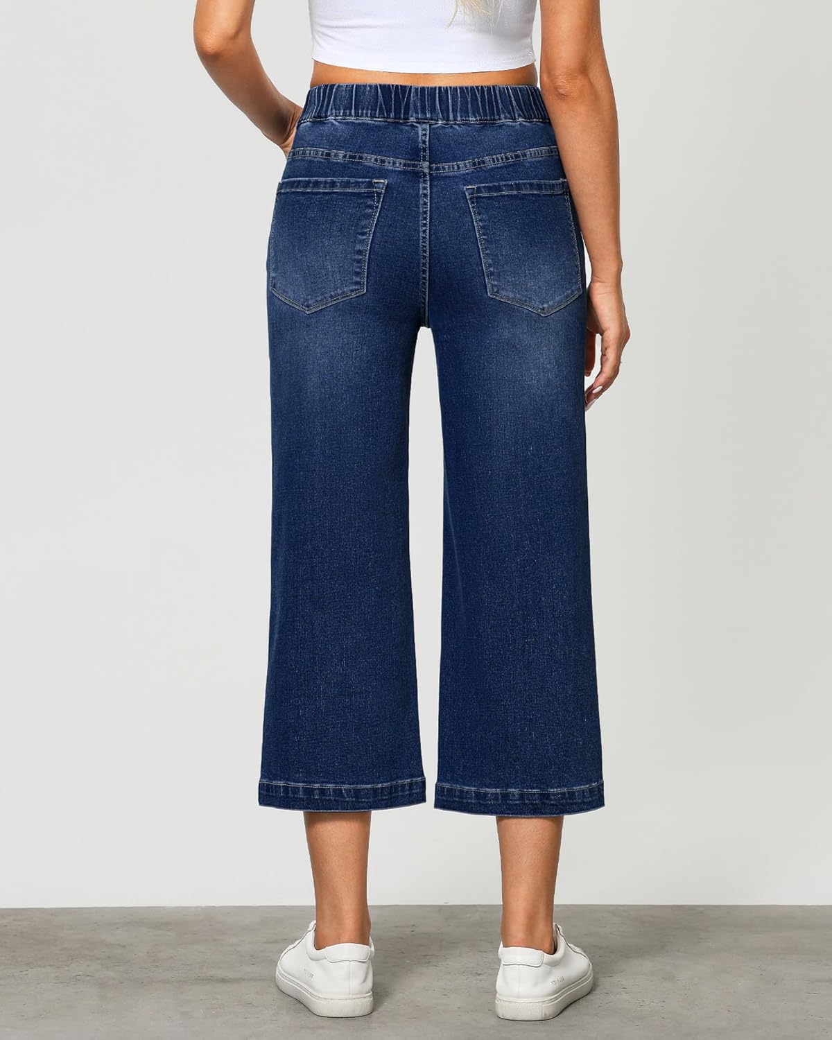 GRAPENT Capri Jeans for Women Wide Leg High Waisted Effortless Flow Pull On Stretchy Denim Elastic Waist Pants with Pockets