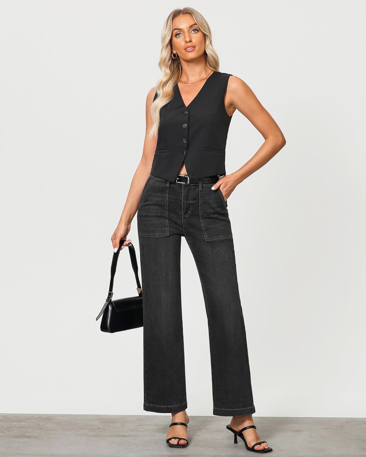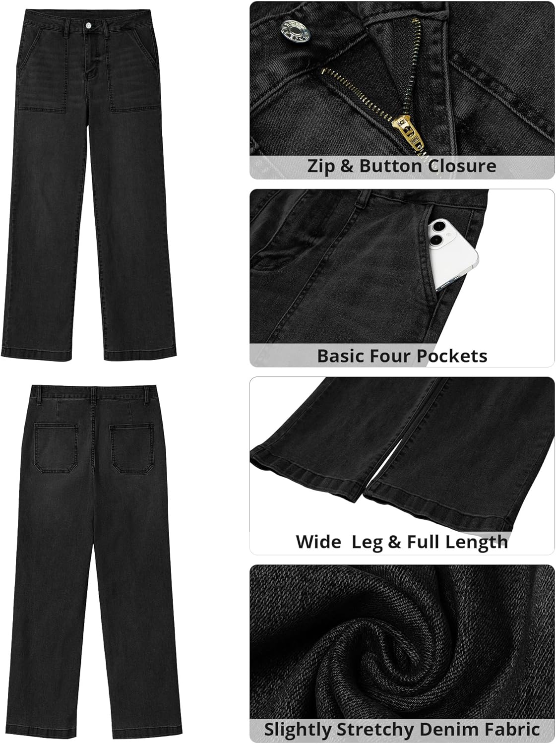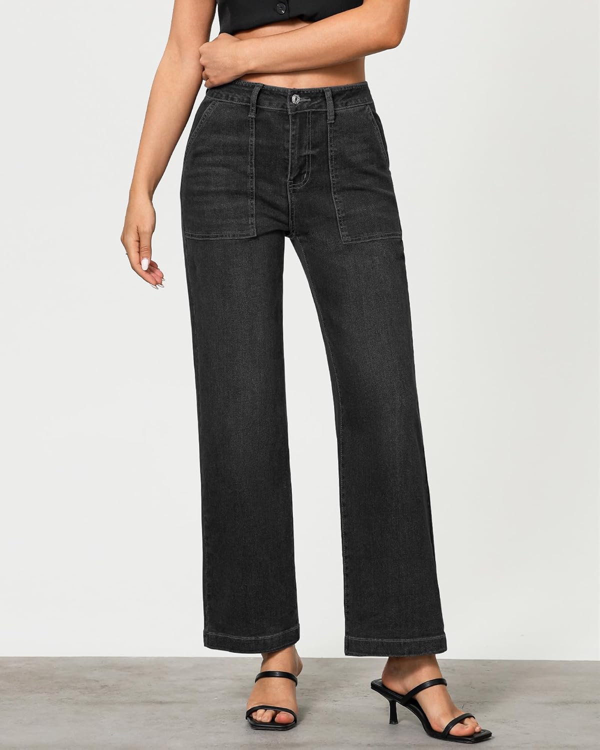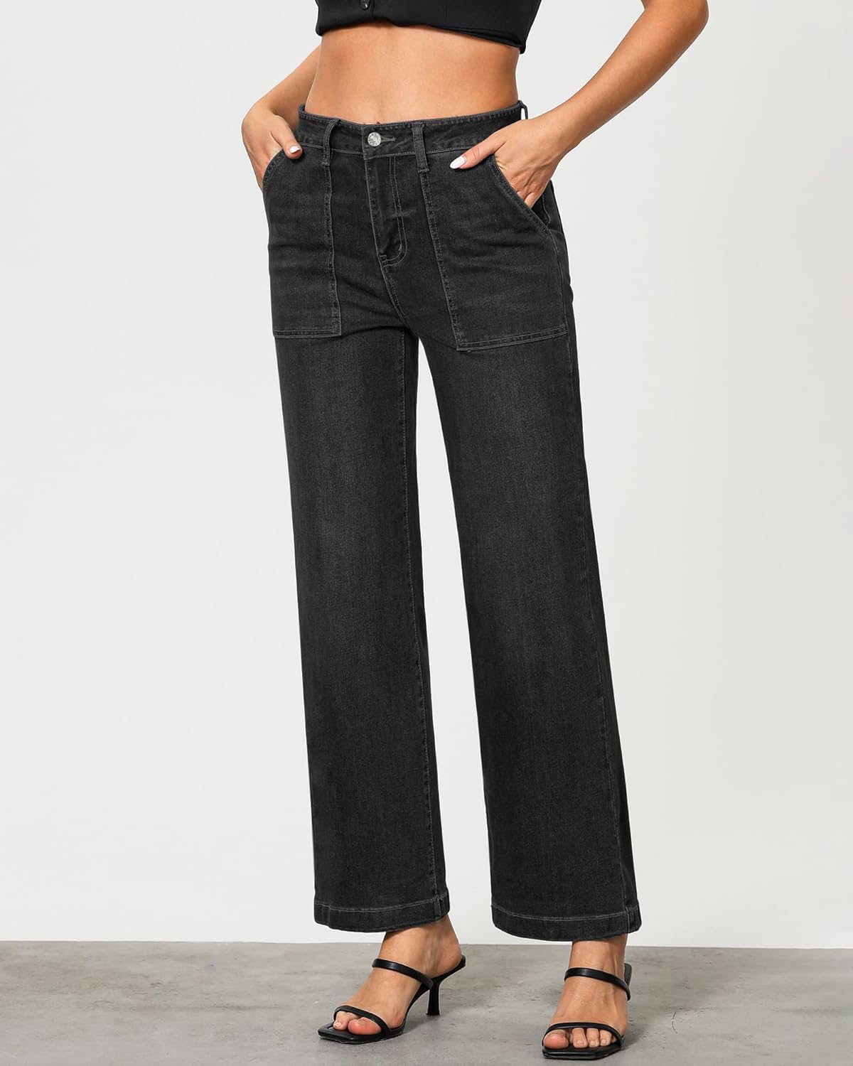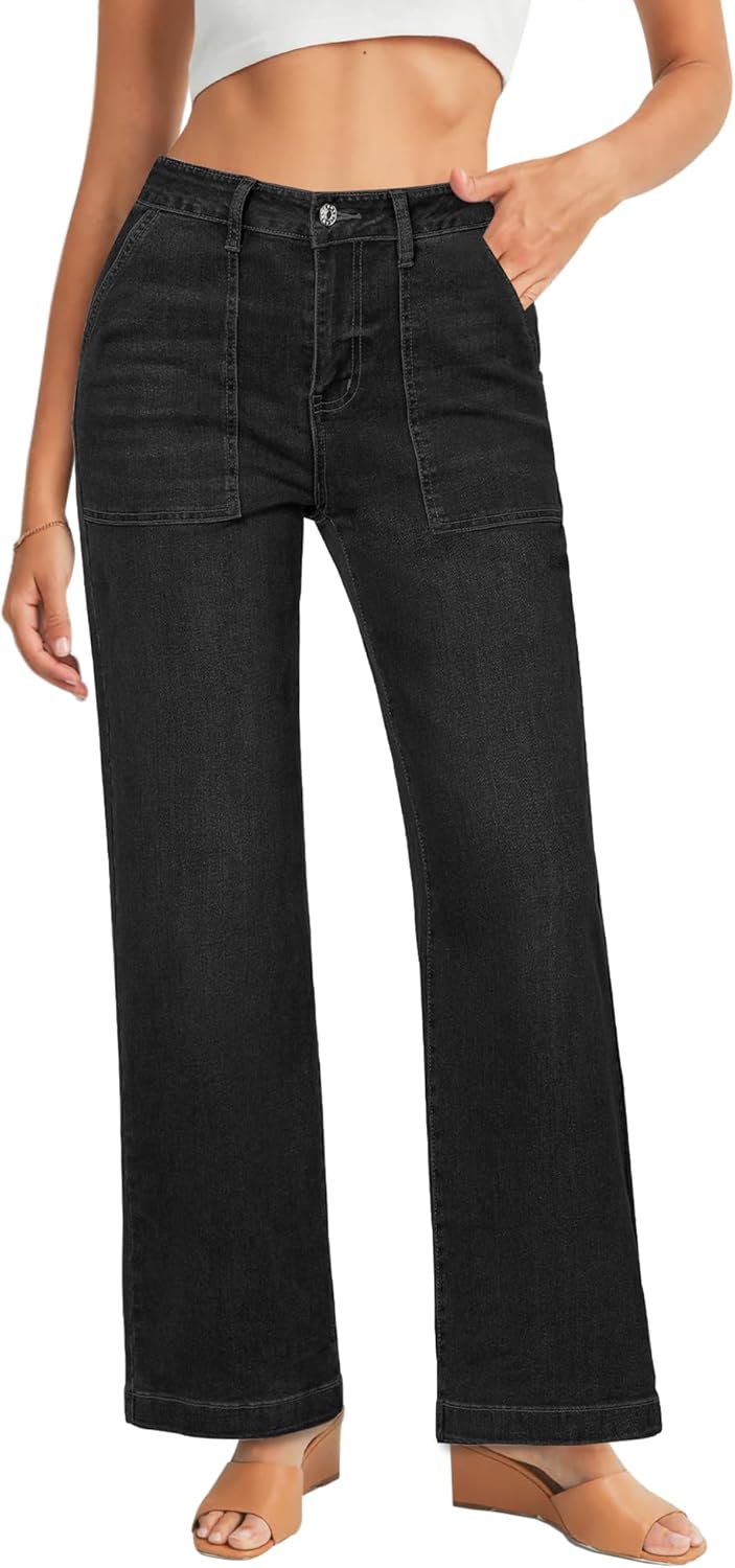 GRAPENT Jeans for Women High Waisted Straight Leg Jeans Stretchy Trendy Wide Leg Denim Pants Jean Trousers Patch Pockets