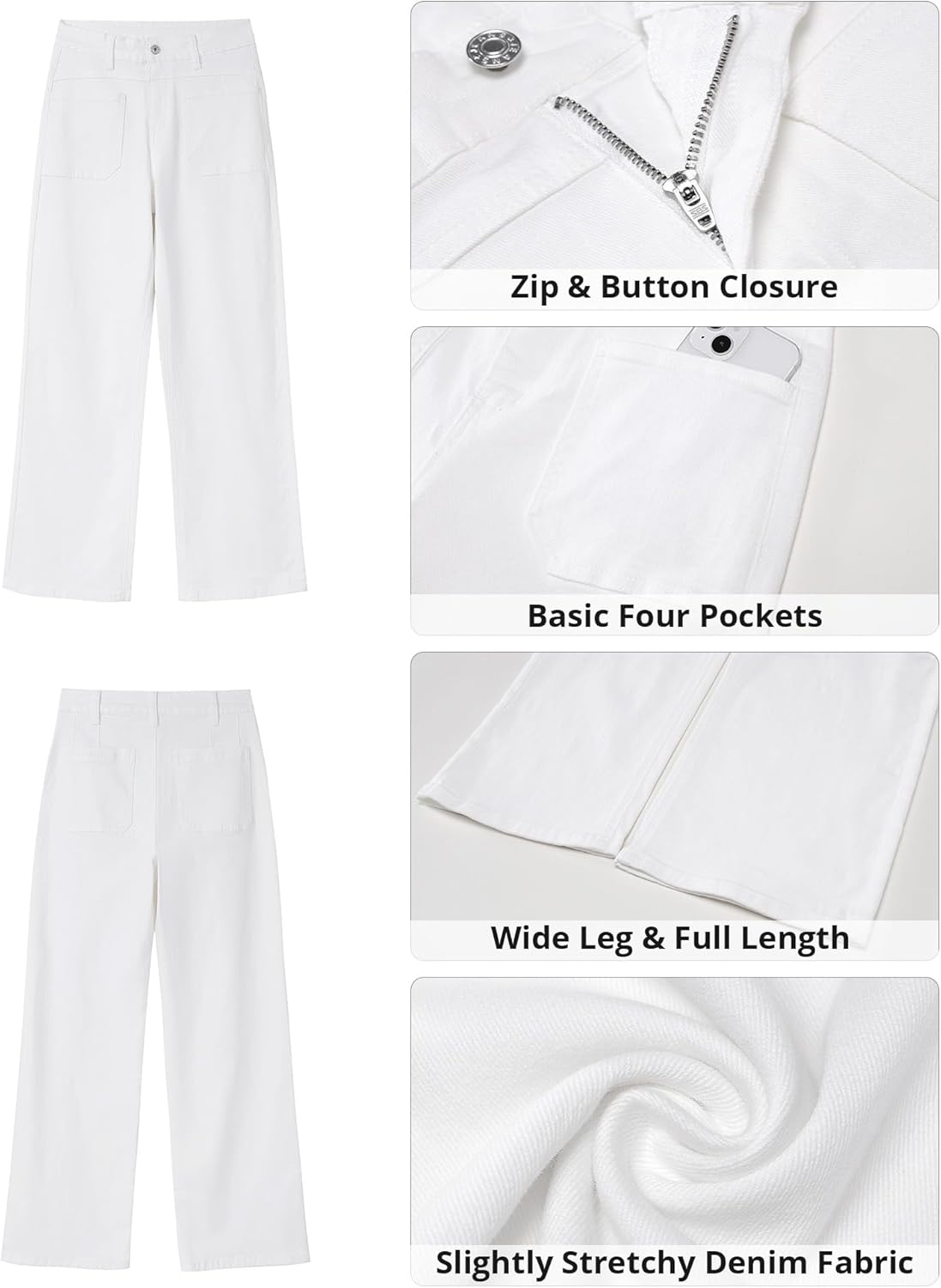 GRAPENT Wide Leg Jeans for Women Trendy High Waisted Loose Straight Leg Stretchy Retro Denim Pants with Pouch Pockets