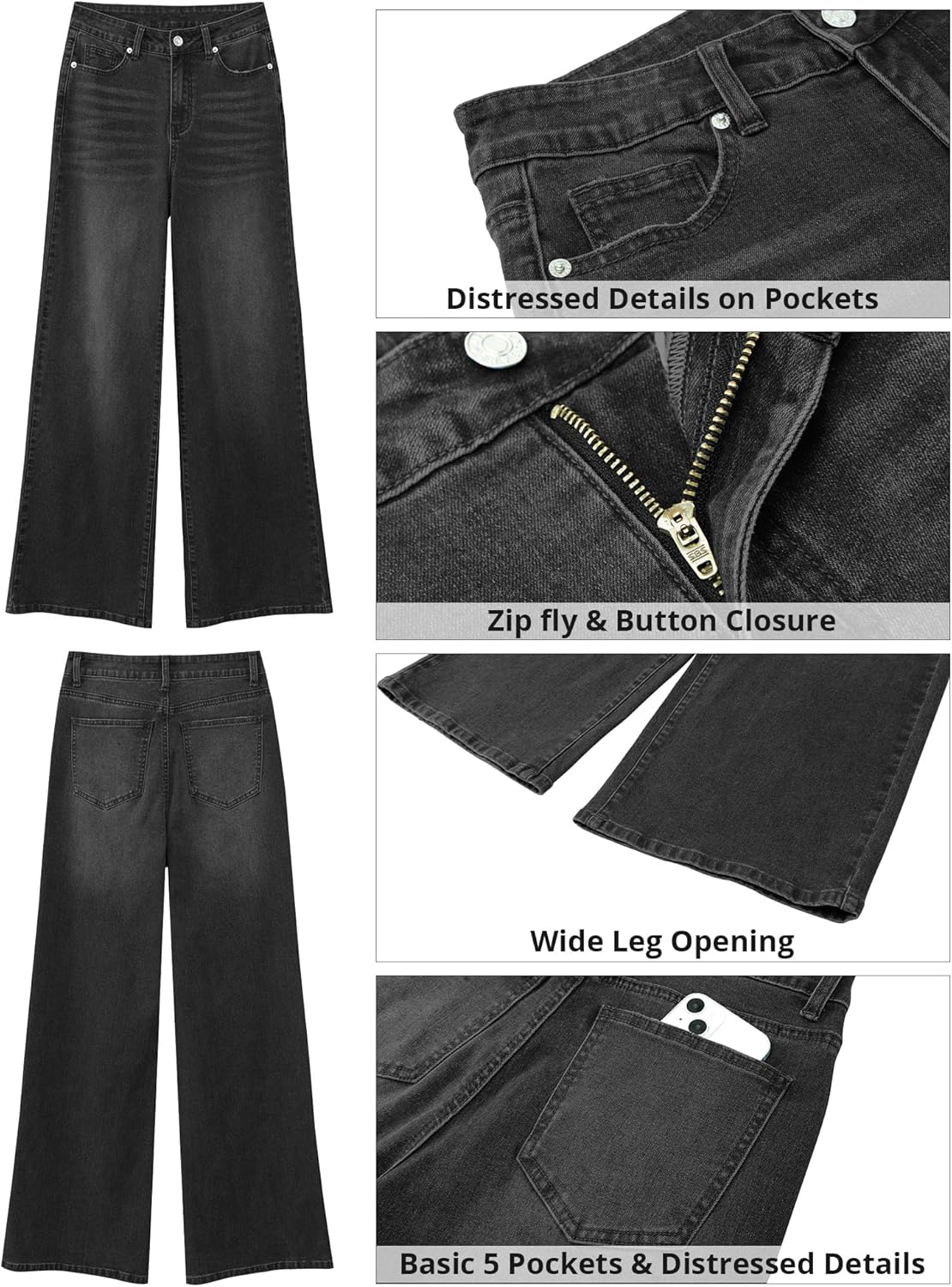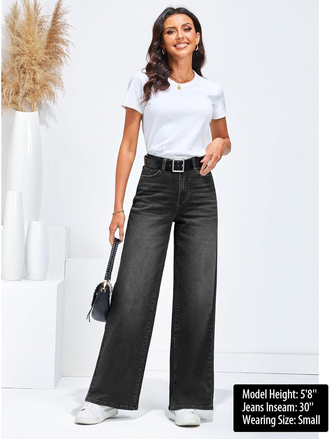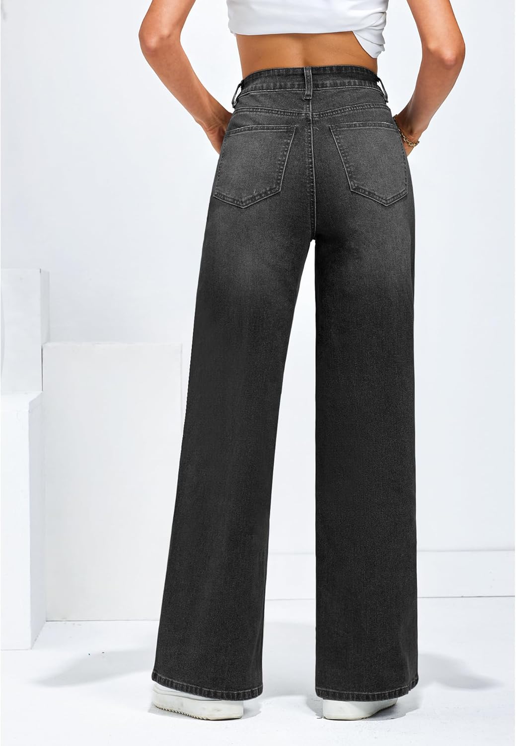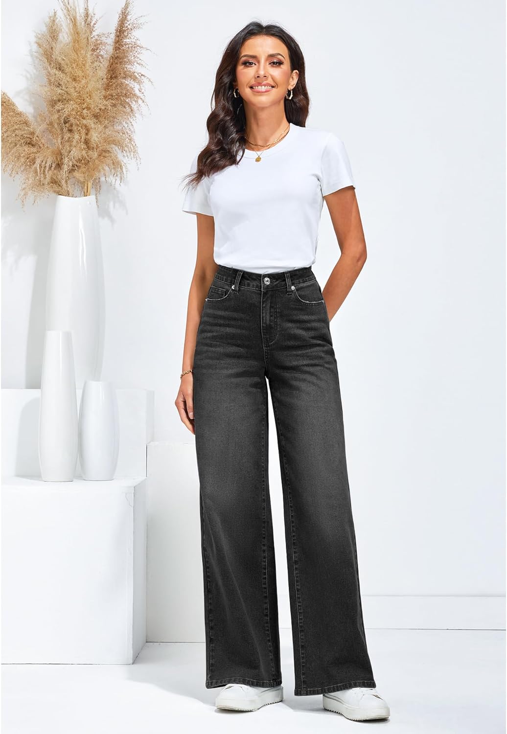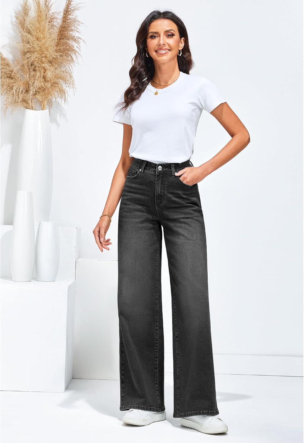GRAPENT Wide Leg Jeans for Women Trendy High Waisted Stretchy Denim Pants 90s Baggy Jeans Trouser Jeans with Pockets