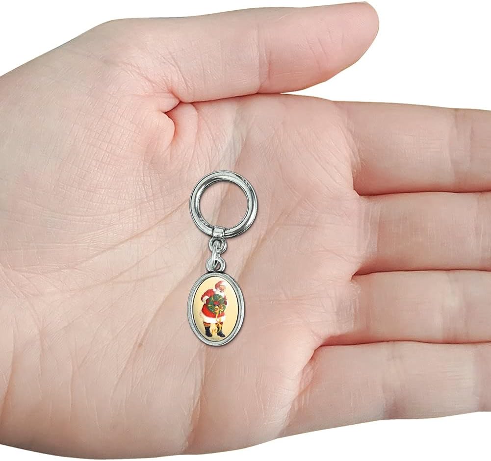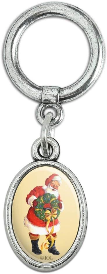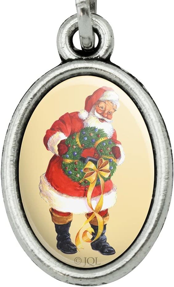 GRAPHICS & MORE Christmas Holiday Santa Holding Wreath Shoe Sneaker Shoelace Oval Charm Jewelry