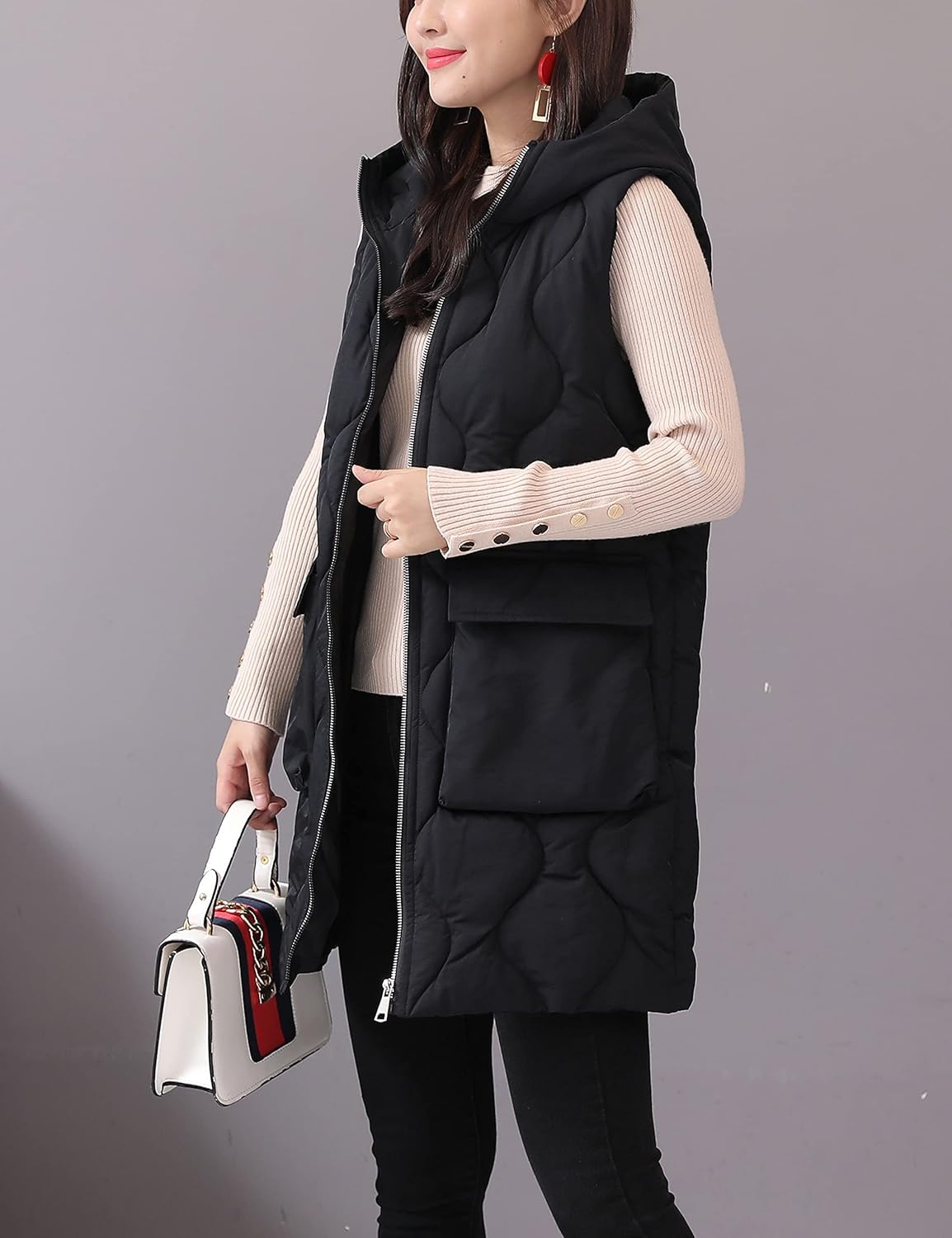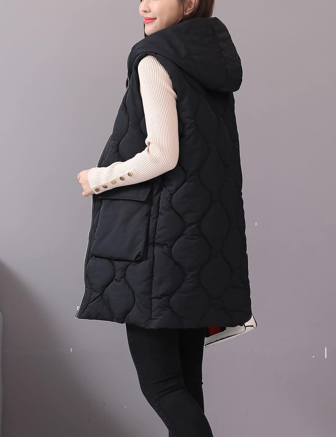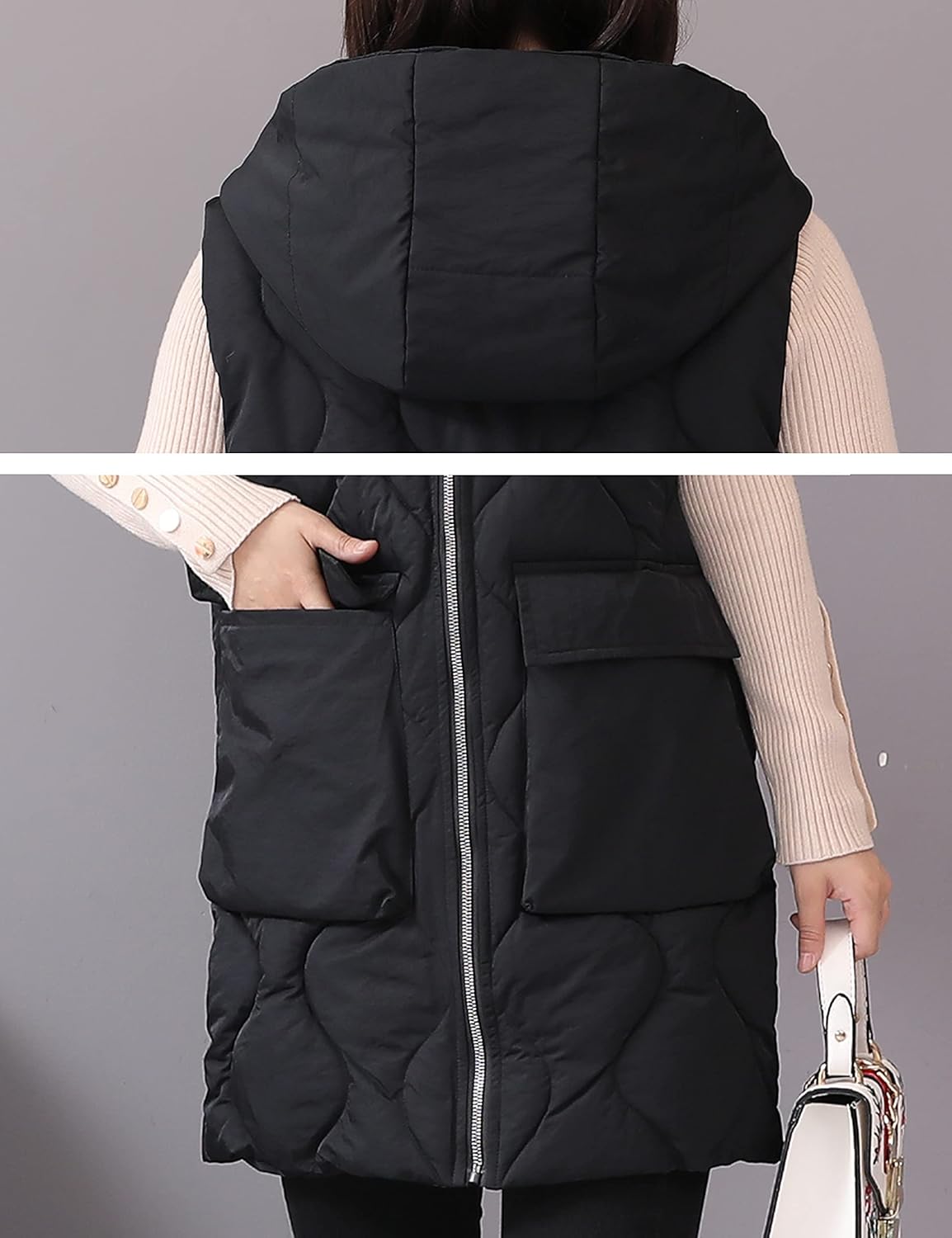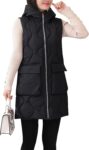 HangNiFang Winter Long Puffer Vest for Women Zip Up Hoodie Quilted Vest Jacket