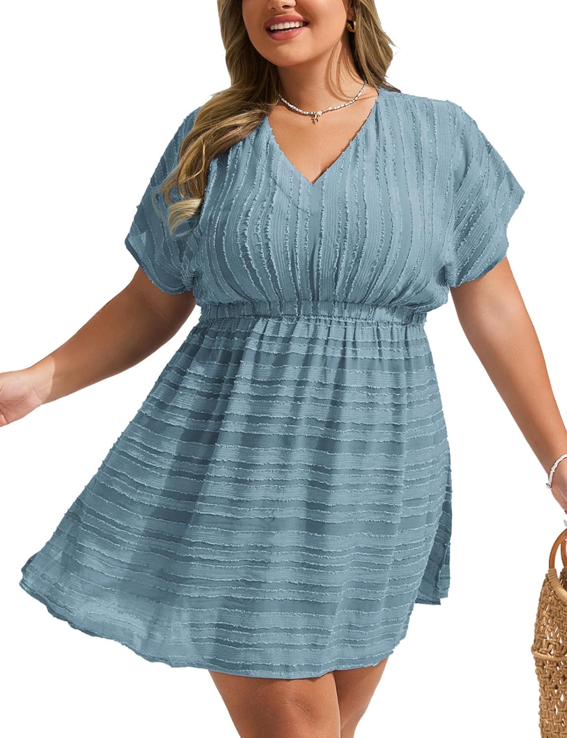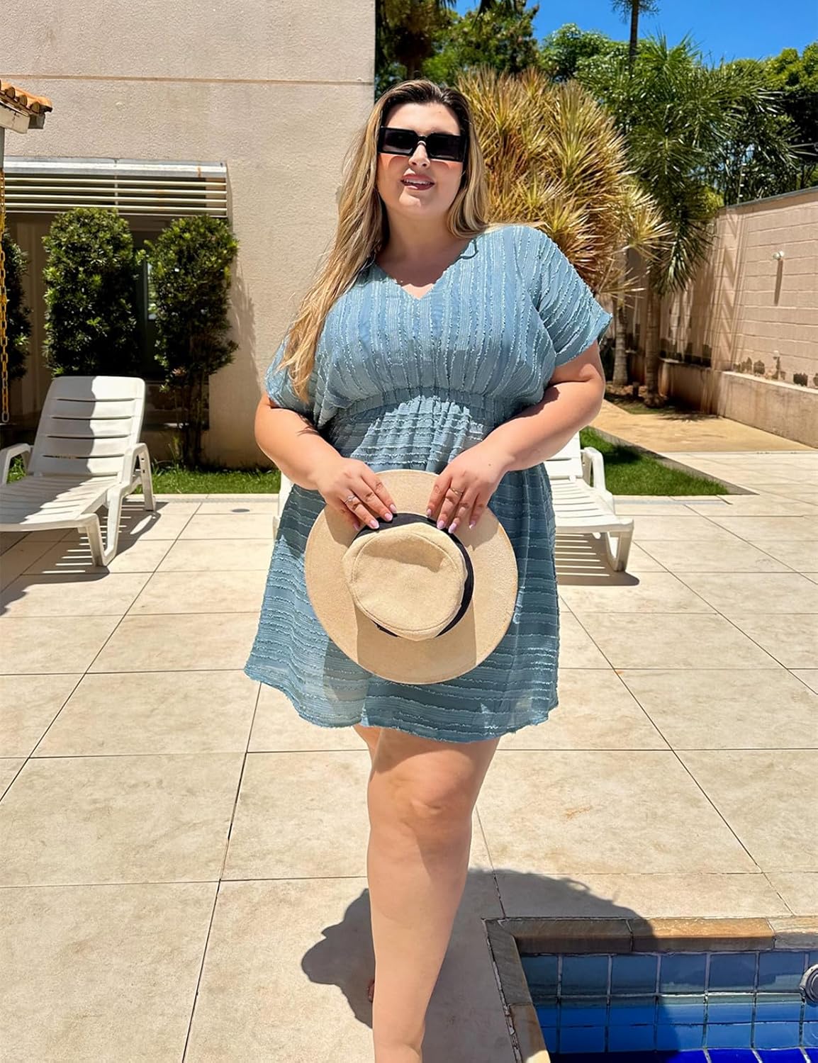 Bathing Suit Cover Up For Women Plus Size Textured Striped