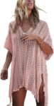 Customers find the swimsuit cover-up cute and well-designed, with soft material that feels comfortable and isn’t itchy. The one-size-fits-all design is roomy, and they appreciate its coverage, particularly noting it covers the bottom well. The color and quality receive positive feedback, with one customer mentioning the color stays true. While some customers say the length is good, others find it too short, especially noting the back is shorter than the front.