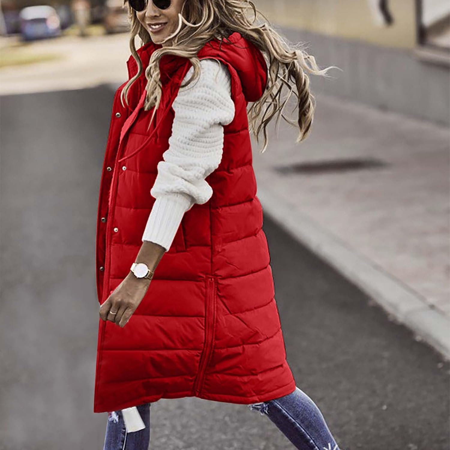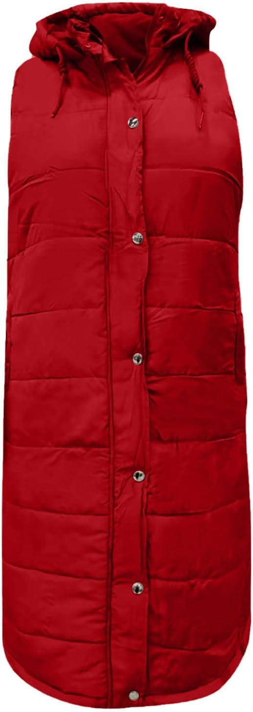 hlysgo Women’S Long Quilted Vest Sleeveless Maxi Length Puffer Vest Zipper & Button Up Casual Down Coat Winter Outerwear