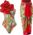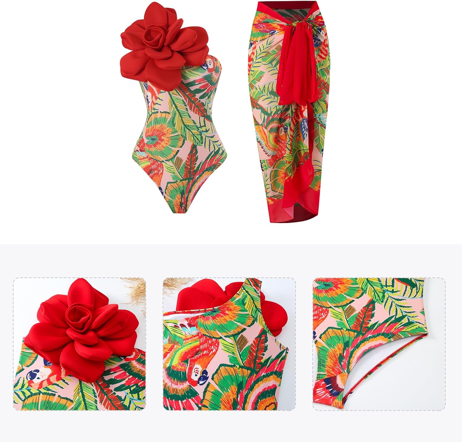 IBAKOM One Piece Swimsuit with Cover Ups Women Push Up Two Pieces Bathing Suit Sexy Bikini Set Wrap Skirt Swimwear Sarong