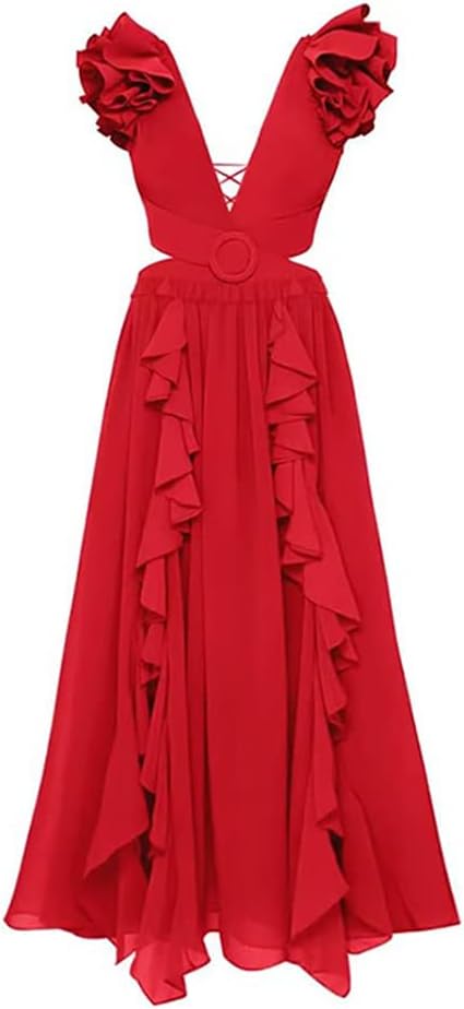 Women’s Solid Ruffle 3D Flower Bikini Set with Asymmetric Beach Skirt Set