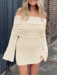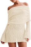 Imily Bela Womens Beach Swimsuit Cover Ups Summer Off The Shoulder Long Bell Sleeve Sheer Mini Dress