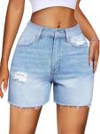 IWD Jean Shorts for Women High Waisted Stretchy Casual Denim Shorts Ripped Frayed Hem Summer Trendy Jorts