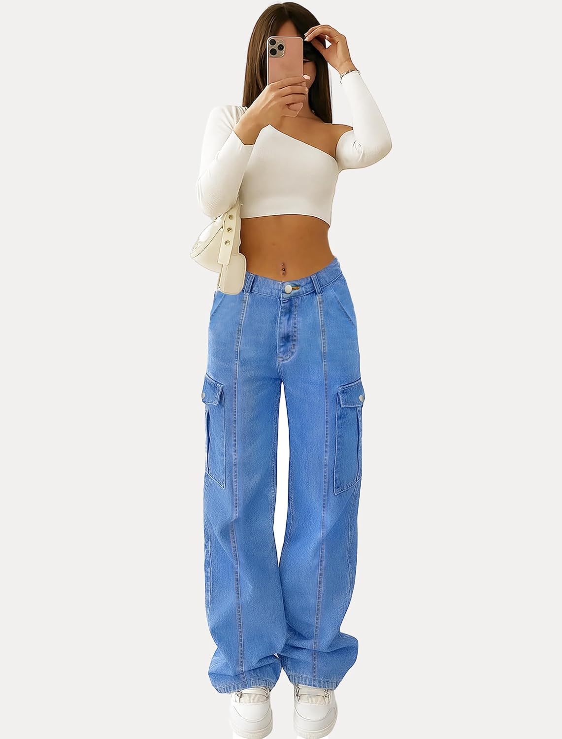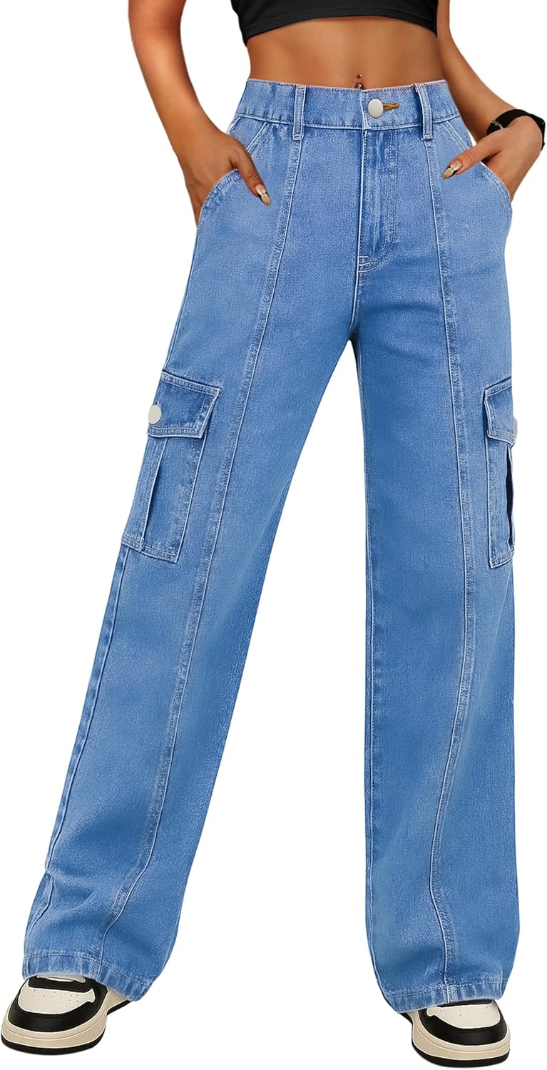 IWD Womens Cargo Pants High Waisted Straight Leg Trousers with 6 Pockets Casual Baggy Pants Trendy Clothes 2025