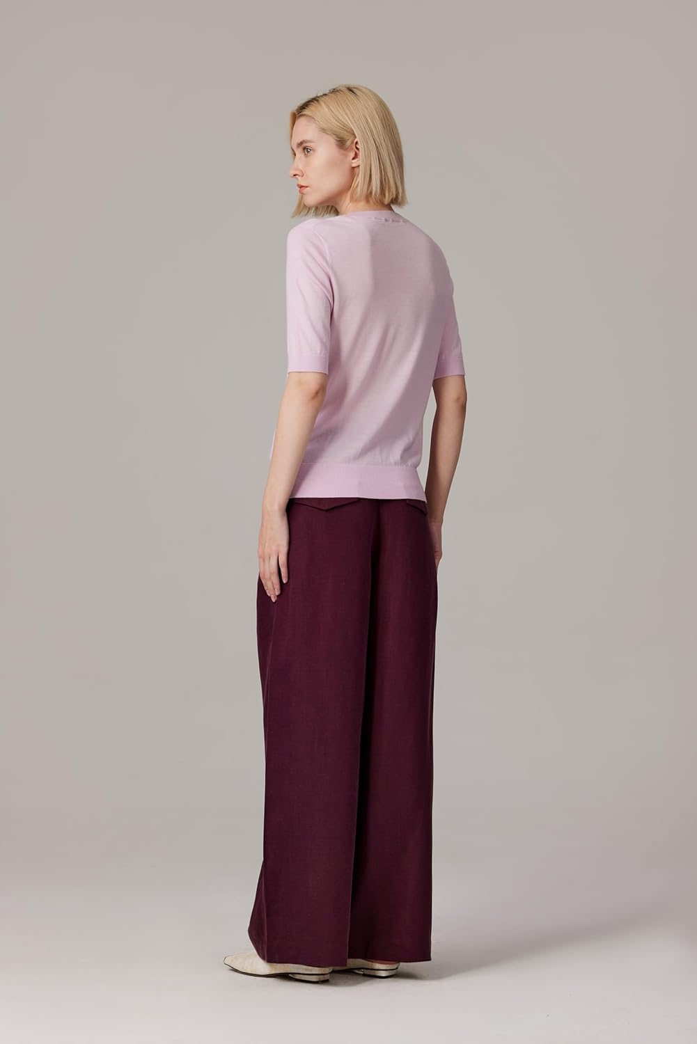 JENNIE LIU Women’s Tissue Weight 75% Merino Wool 25% Silk Crew Neck Short Sleeve Sweater | Machine-Washable