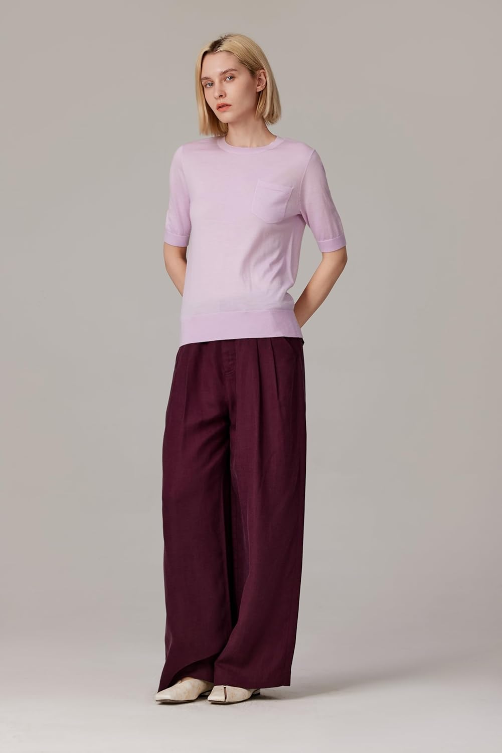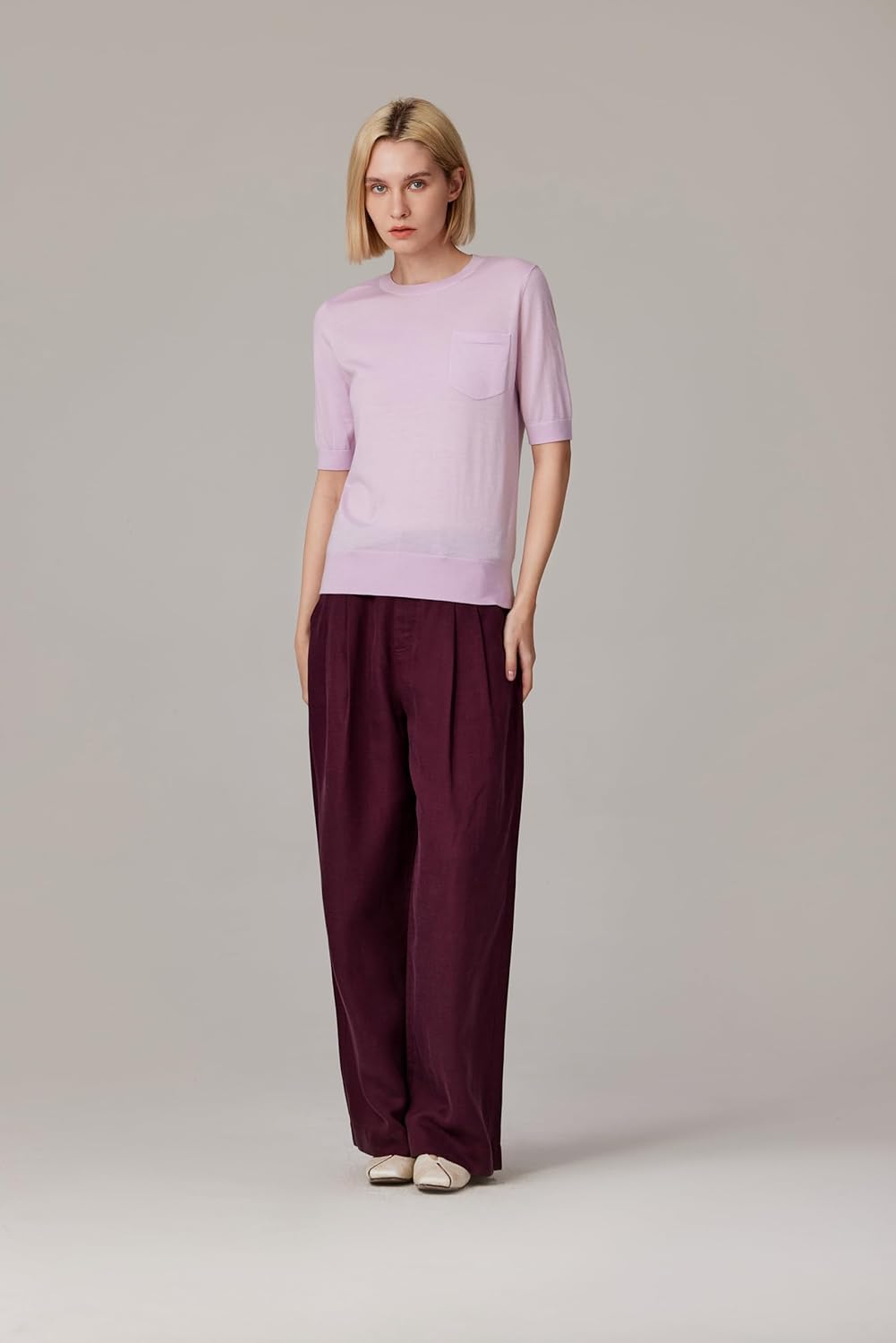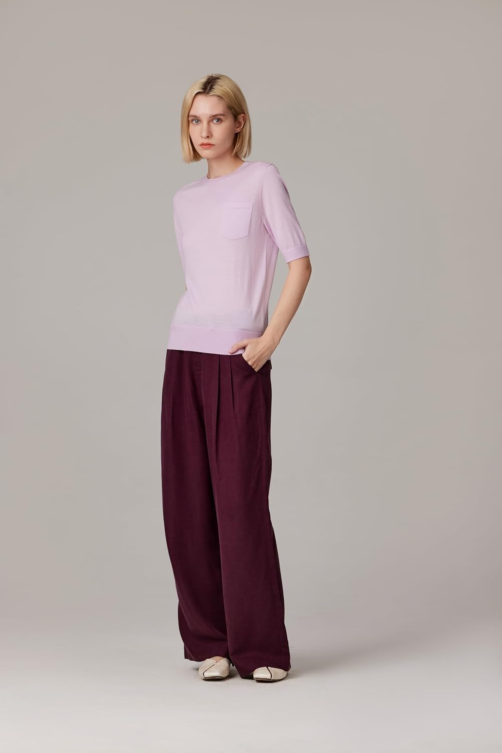 In a polished merino wool and silk blend, the JENNIE LIU Merino Wool Silk Short Sleeve Sweater defines everyday luxury with breathable comfort and effortless style.