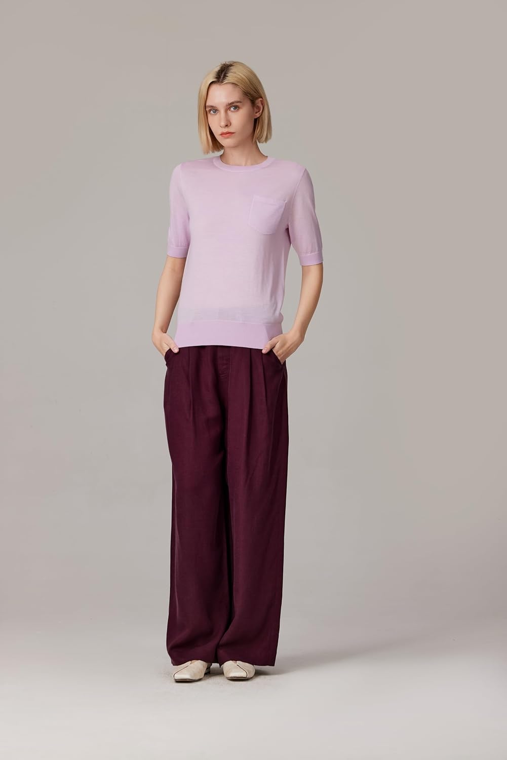 This summer weight wool silk blend top is a fine gauge short sleeve sweater that feels featherlight, keeping you cool and chic through warmer days. Its classic tee silhouette transitions seamlessly from workdays to off-duty hours, making this breathable luxury knit top a versatile favorite among office to weekend women’s tees. Even better, this machine washable merino wool sweater offers the indulgent feel of a premium knit with the easy care convenience of home laundering.