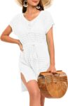 Jhsnjnr Women’s Crochet Beach Dresses Tie Waist Swimsuit Coverup Swimwear Bathing Suit Cover Ups