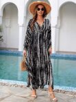 Kaftan Dresses for Women V-Neck Batwing Sleeves Swimsuit Beach Cover Ups Tie Dye Caftan Hawaiian Dress