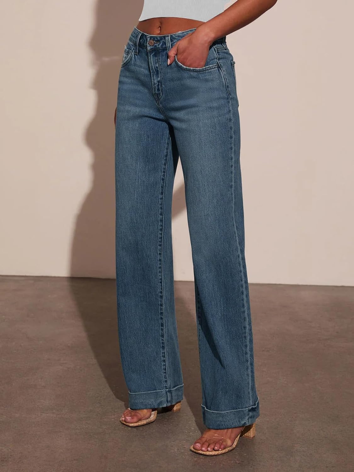 KUNMI Jeans for Women Wide Leg Baggy High Waist Boyfriends Straight Leg Stretchy Denim Pants Trendy Fall 2025