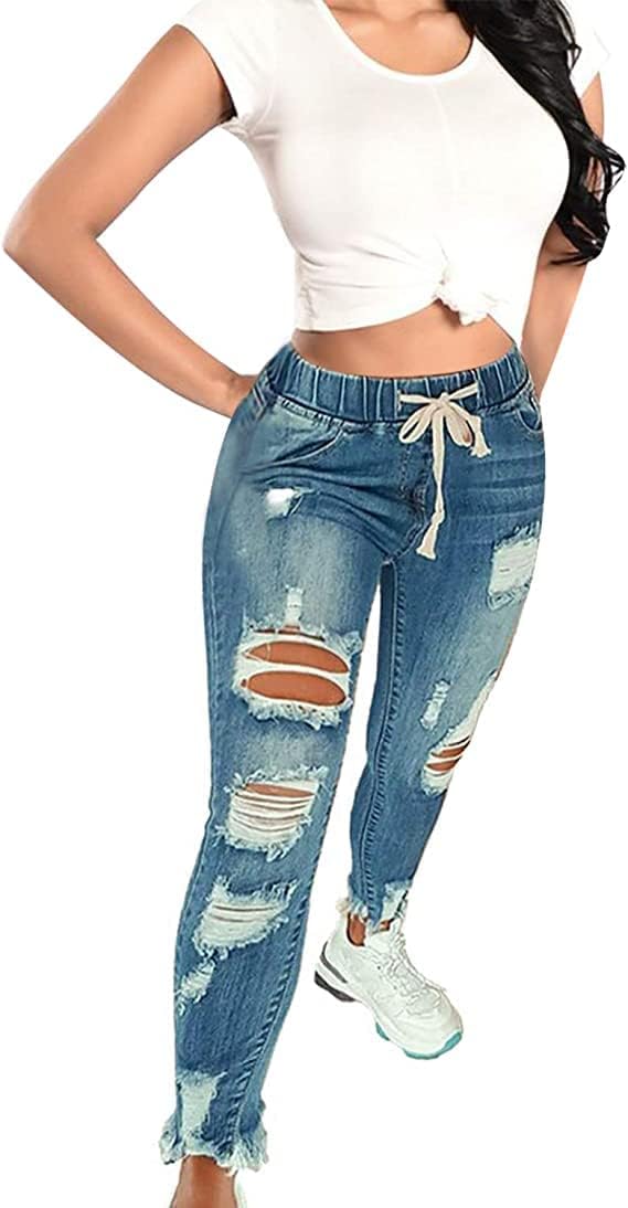 KUNMI Women High Waist Skinny Stretch Ripped Jeans Destroyed Denim Pants Plus Size