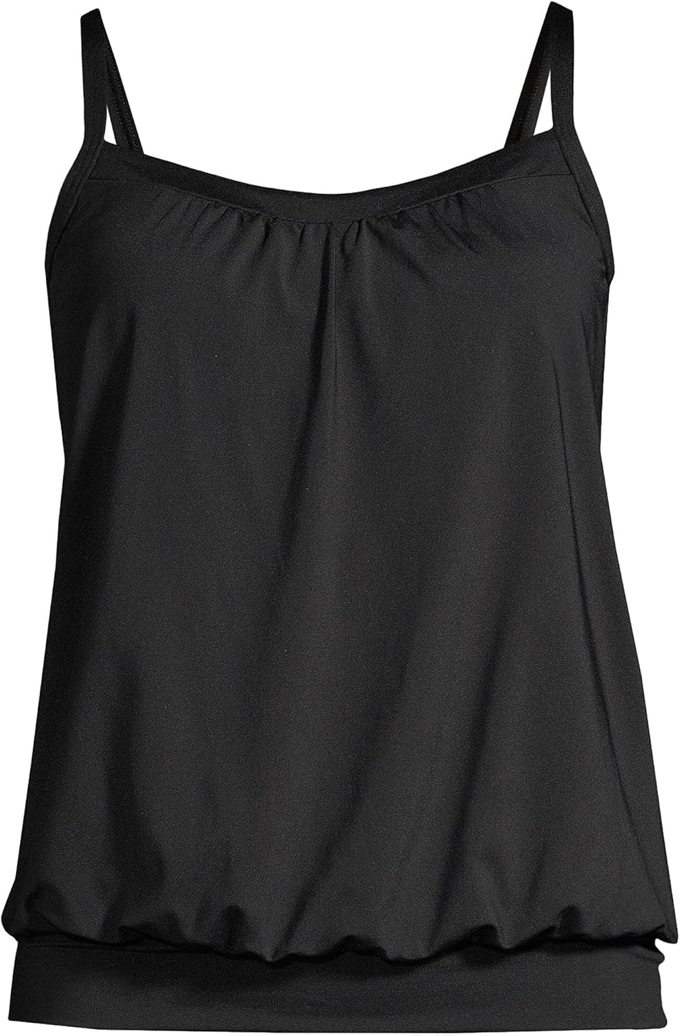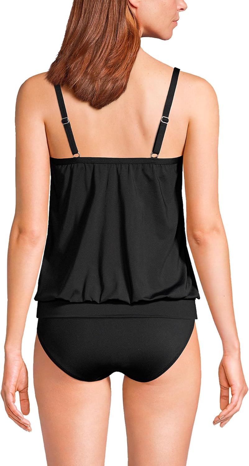 Lands’ End Women’s Blouson Tummy Hiding Tankini Top Swimsuit Adjustable Straps