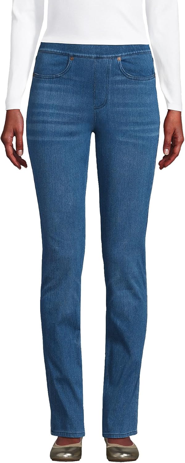 Lands’ End Women’s Starfish High Rise Knit Denim Straight Jeans