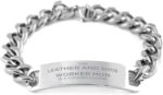 LEATHER AND SHOE WORKER MOM Engraved Cuban Chain Design for Sophisticated and Elegant Style.
