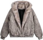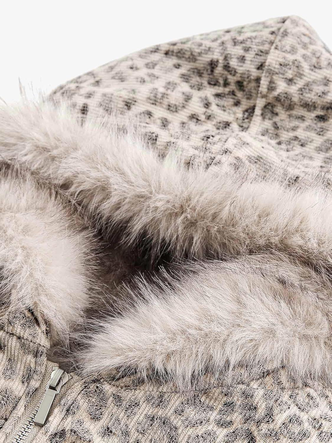 Leopard Cheetah Fuzzy Hoodie Winter Coat Lined Thicken Denim Leopard Print Hooded Jacket