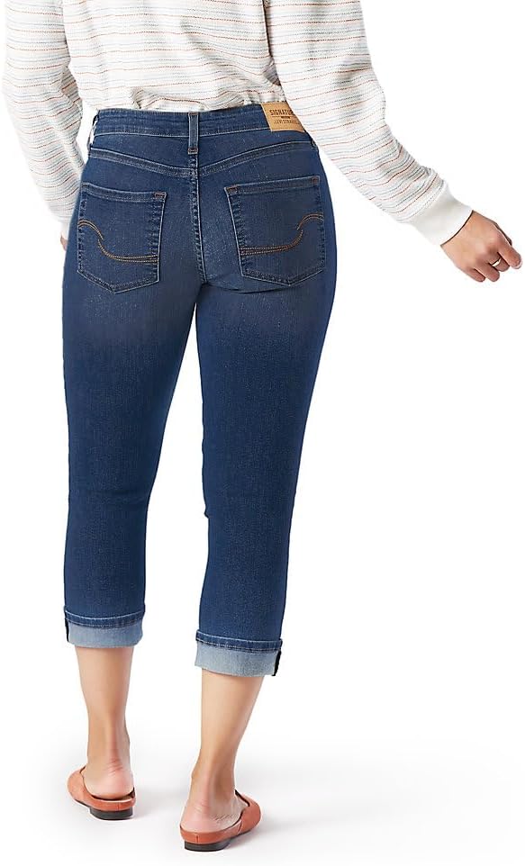 Signature by Levi Strauss & Co.™ Women’s Mid-Rise Capris are made with Simply Stretch denim for a snug, smoothing fit that wear comfortably like leggings. (But they’re jeans. Genius.) With a slim fit through the thigh and leg, these capri jeans crop right at the bottom of the calf and end with a flattering 1-and-done cuff. Signature by Levi Strauss & Co.™ Women’s Mid-Rise Capri Jeans are your go-to denim that effortlessly hug curves and offer excellent flexibility, dynamic comfort, and a perfect fit — all day long.