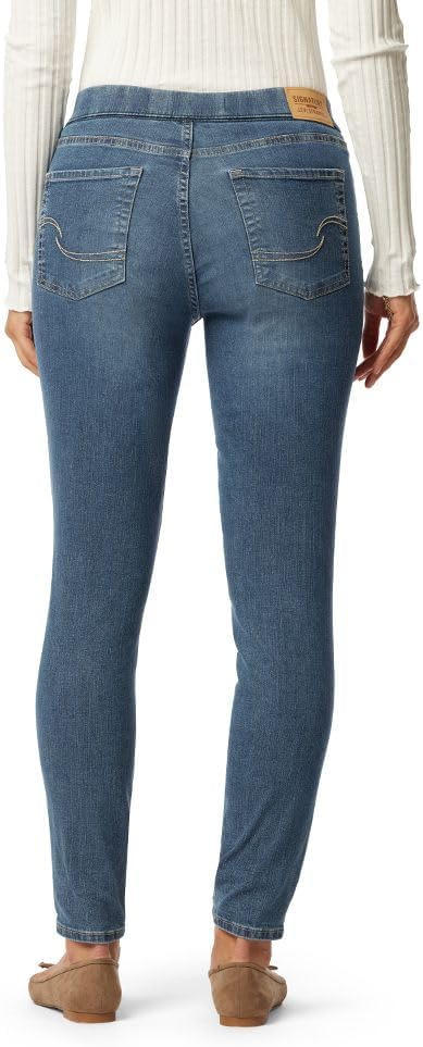 Signature by Levi Strauss & Co.™ Women’s Totally Shaping Pull-On Skinny Jeans add easy style to your wardrobe. They have a flattering, skinny fit from the pull-on waistband down to the hem; the stretchy fabric keeps everything comfortable as they keep their shape. The built-in tummy panel smooths your middle without feeling tight. Wear this pair with a favorite top and any shoes you like. You’ve got options.