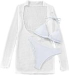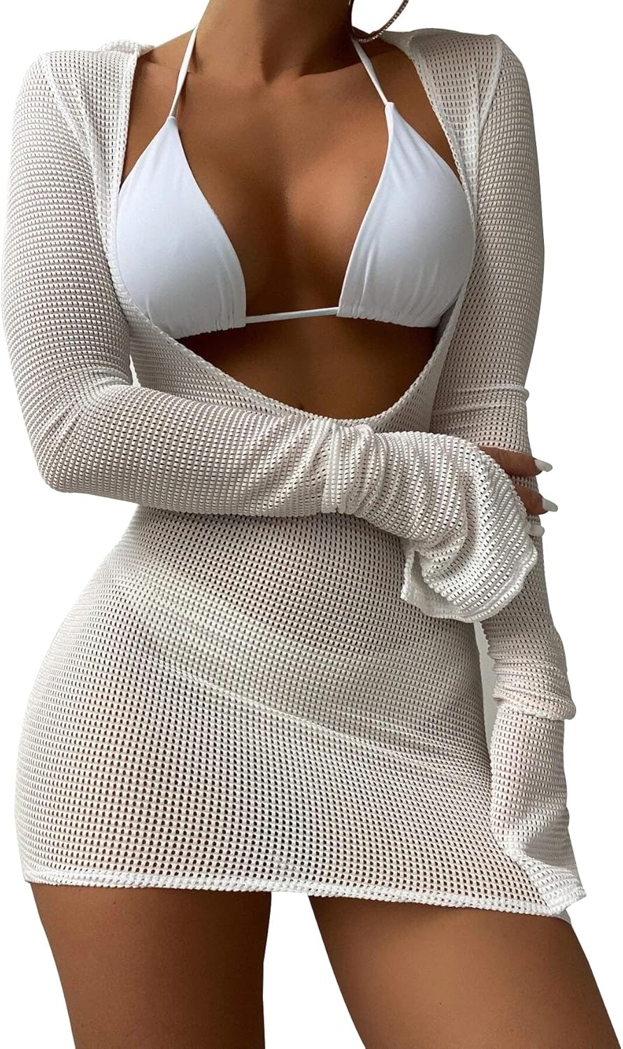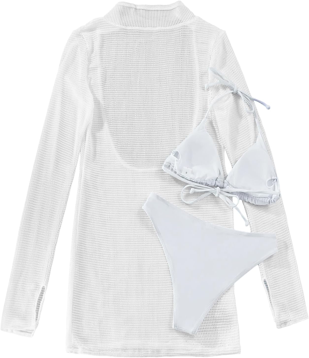 Lilosy Sexy Long Sleeve Mesh Swimsuit 3 Pieces Cover Up Bikini Set