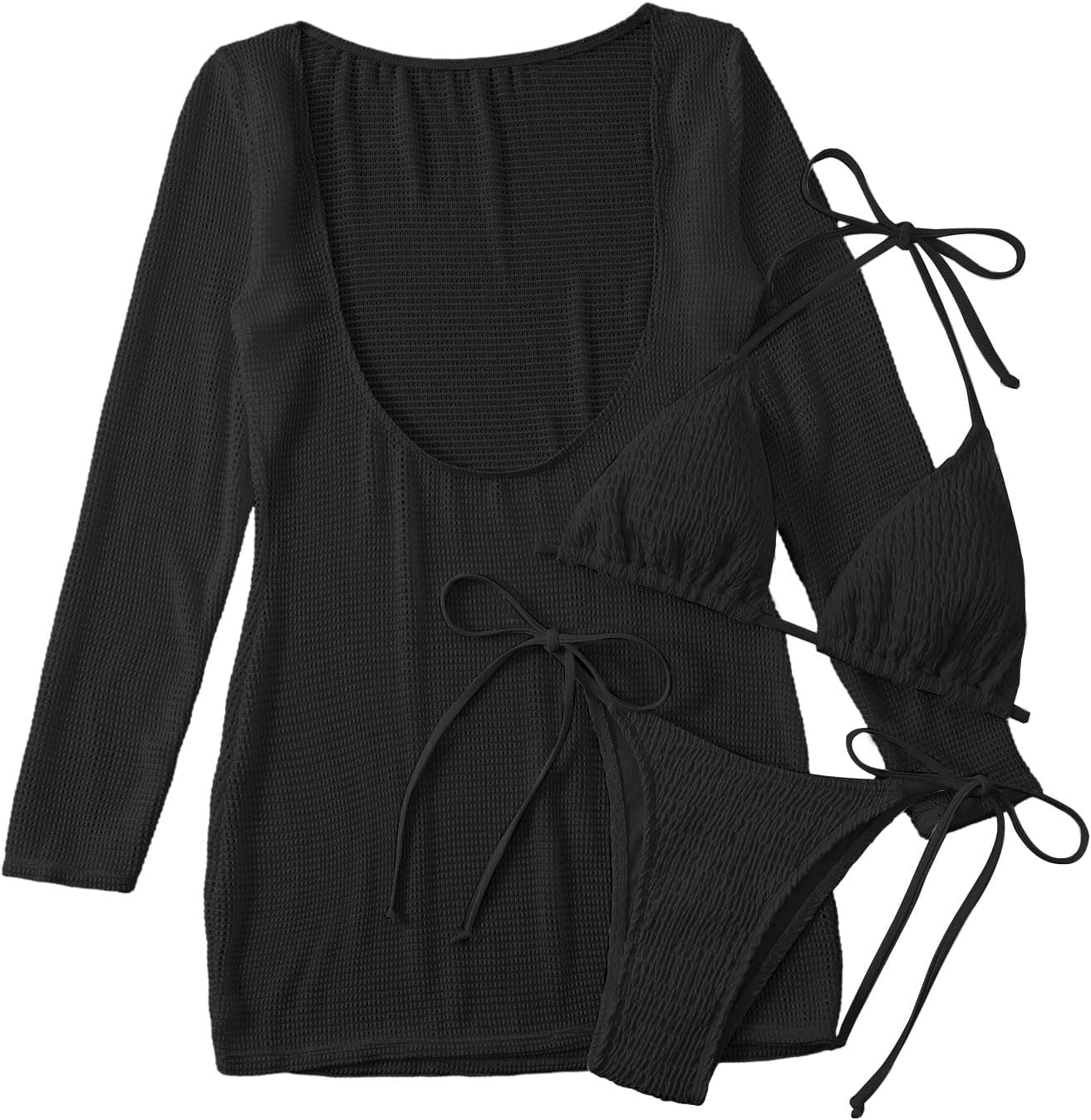 Lilosy Sexy Long Sleeve Mesh Swimsuit 3 Pieces Cover Up Bikini Set