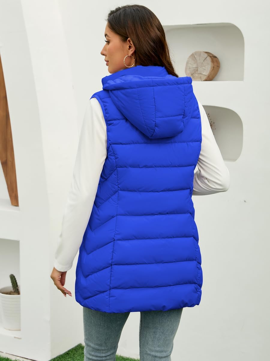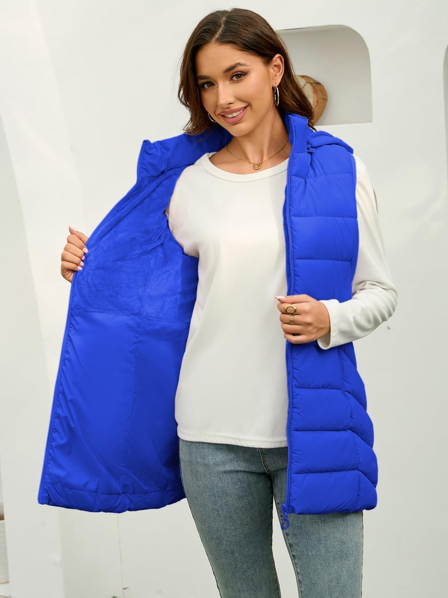 Long Puffer Vest for Women with Hood Lightweight Packable Sleeveless Down Vest for Spring, Fall & Winter