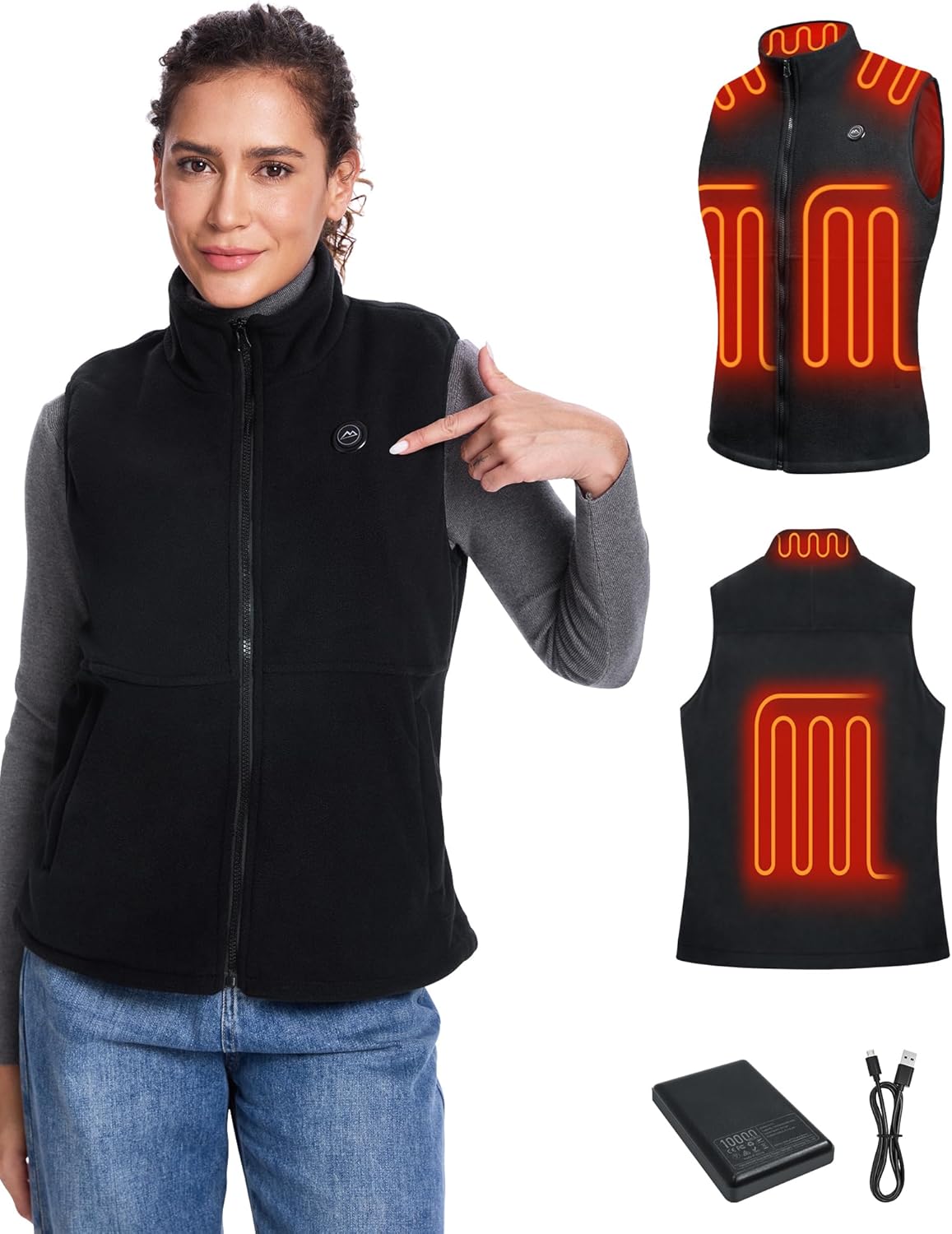 Loowoko Women’s Fleece Heated Vest with Battery Pack Included, Rechargeable Heated Jacket Electric Heating Vests for Winter