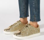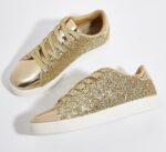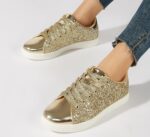 LUCKY STEP Glitter Shoes Sparkly Bling Shiny Bedazzled Lace up Fashion Sneakers for Women