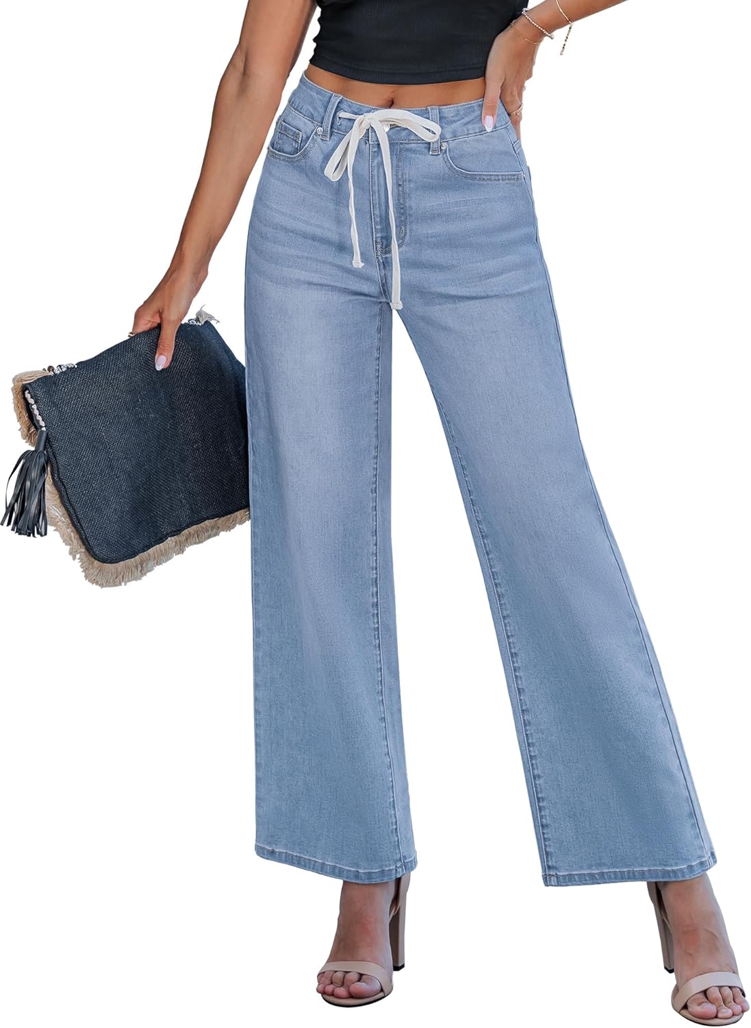 luvamia Wide Leg Jeans Woman High Waisted Trendy Drawstring Stretchy Denim Pants Relaxed Fit Trouser Jeans