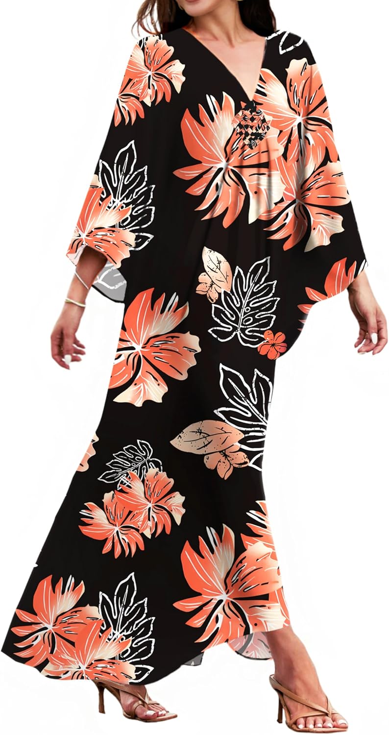 MAKABO Kaftan Dresses for Women, V Neck Moo Moos Colorful Print Cover Ups Caftan Beach Dresses for Swimwear