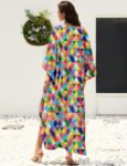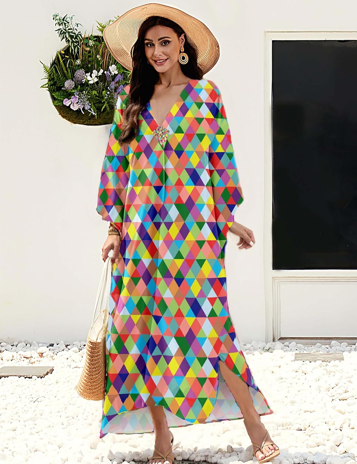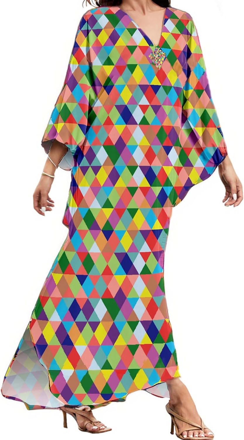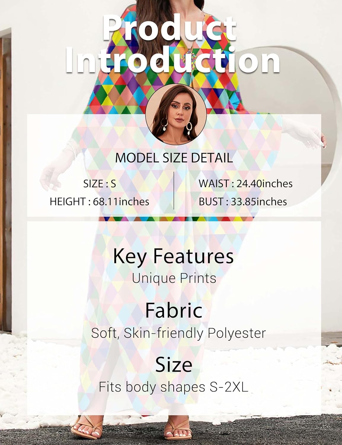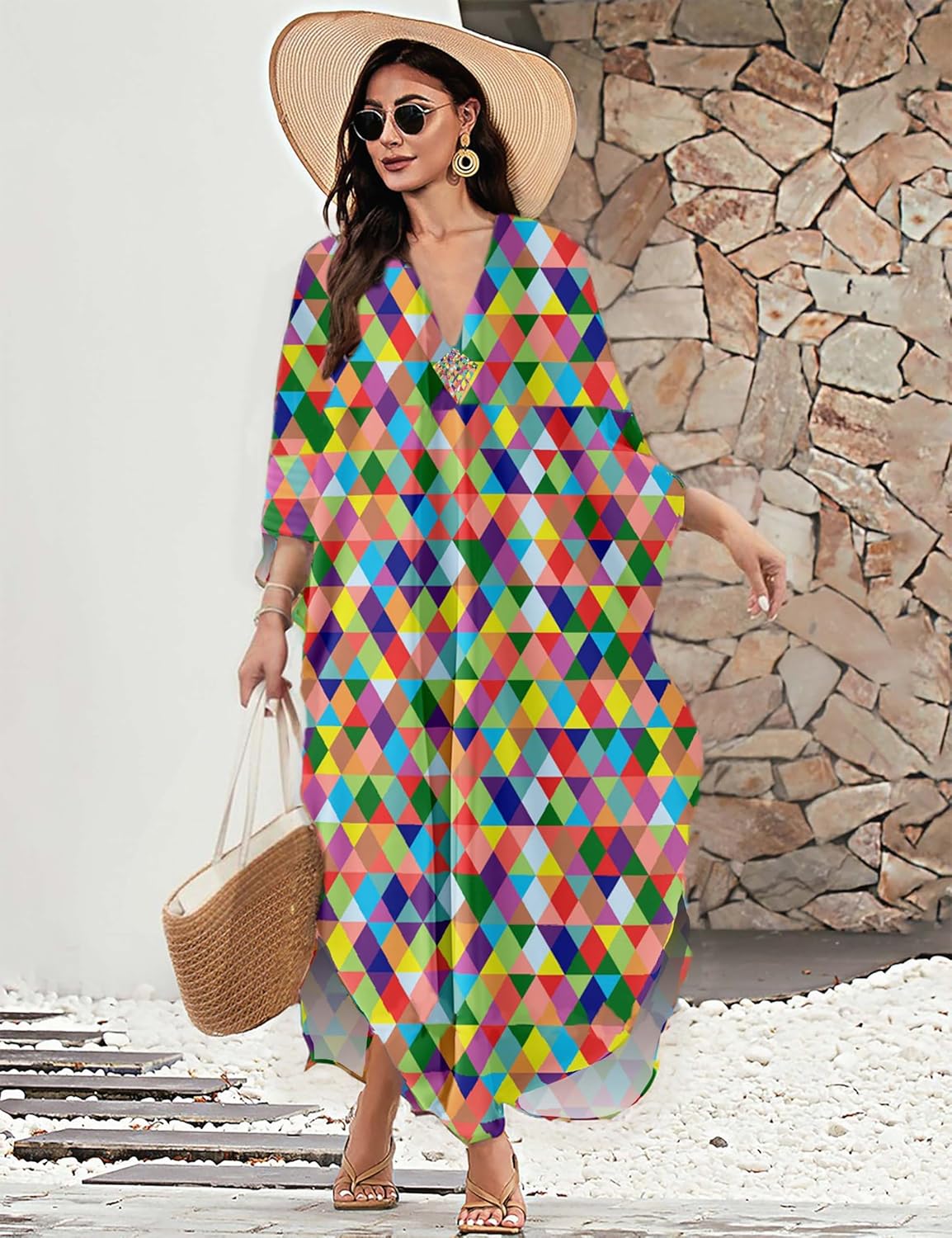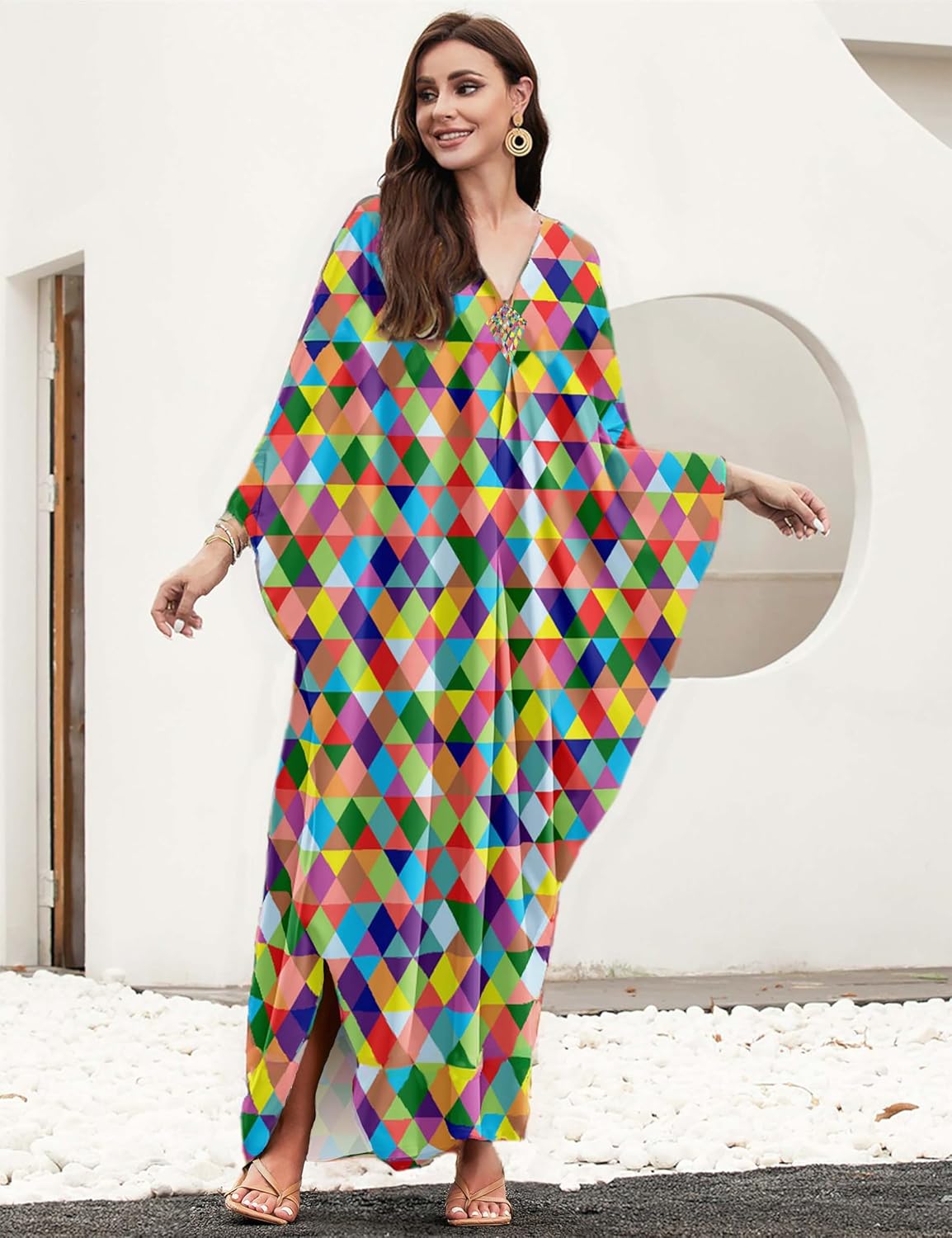 MAKABO Kaftan Dresses for Women, V Neck Moo Moos Colorful Print Cover Ups Caftan Beach Dresses for Swimwear