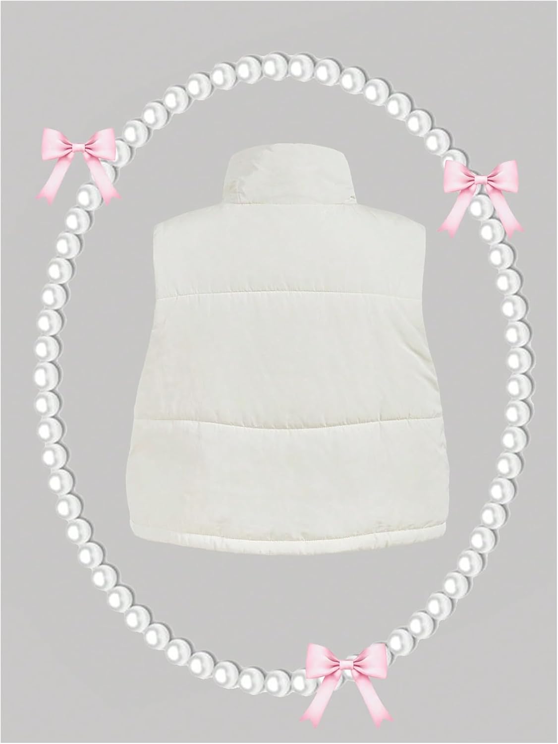 MakeMeChic Women’s Bow Front Padded Vest Mock Neck Sleeveless Quilted Puffer Jacket Outerwear